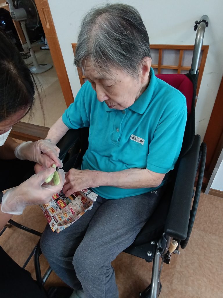 2025.08.17 すずらん通り ✋ハンド・フットケア✋ 今日は、ハンドフットケアに取り組みました(‘ω’)ノ 手と足の伸びている爪を 爪切りとヤスリで切り ✨✨✨キレイになりました✨✨✨ 記事一覧へ戻る 各施設ごとのすずらん便りはこちらから