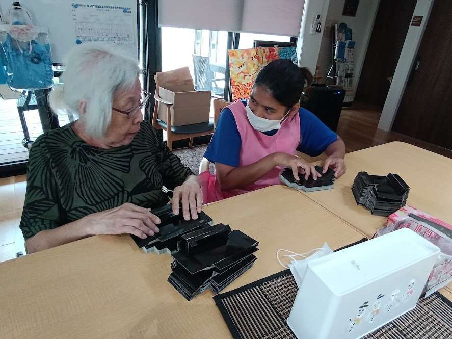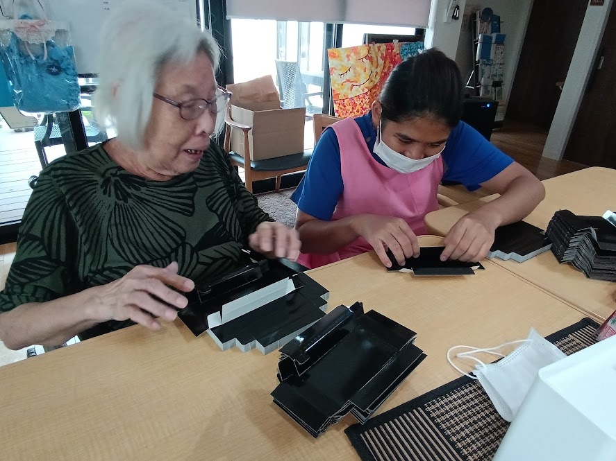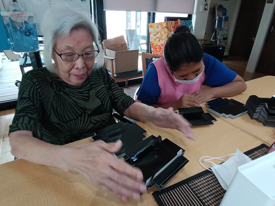自宅からお仕事を持ってこられたご利用者様にお弟子さんがついていました👀