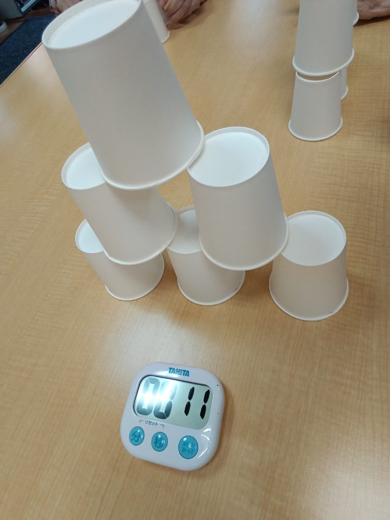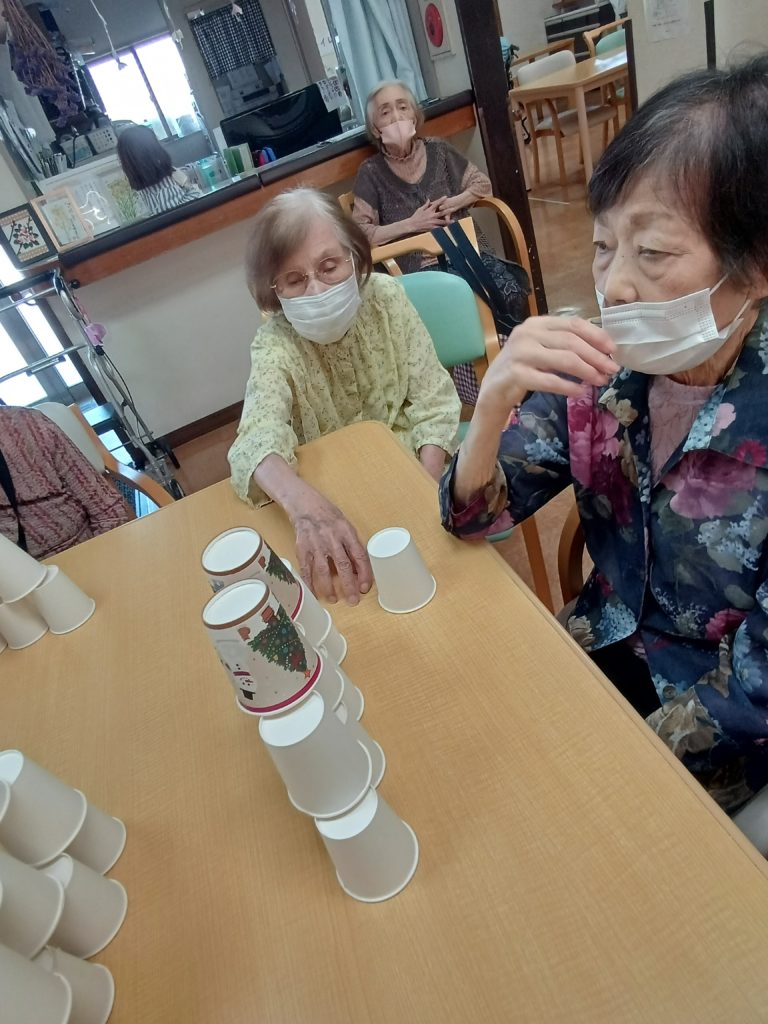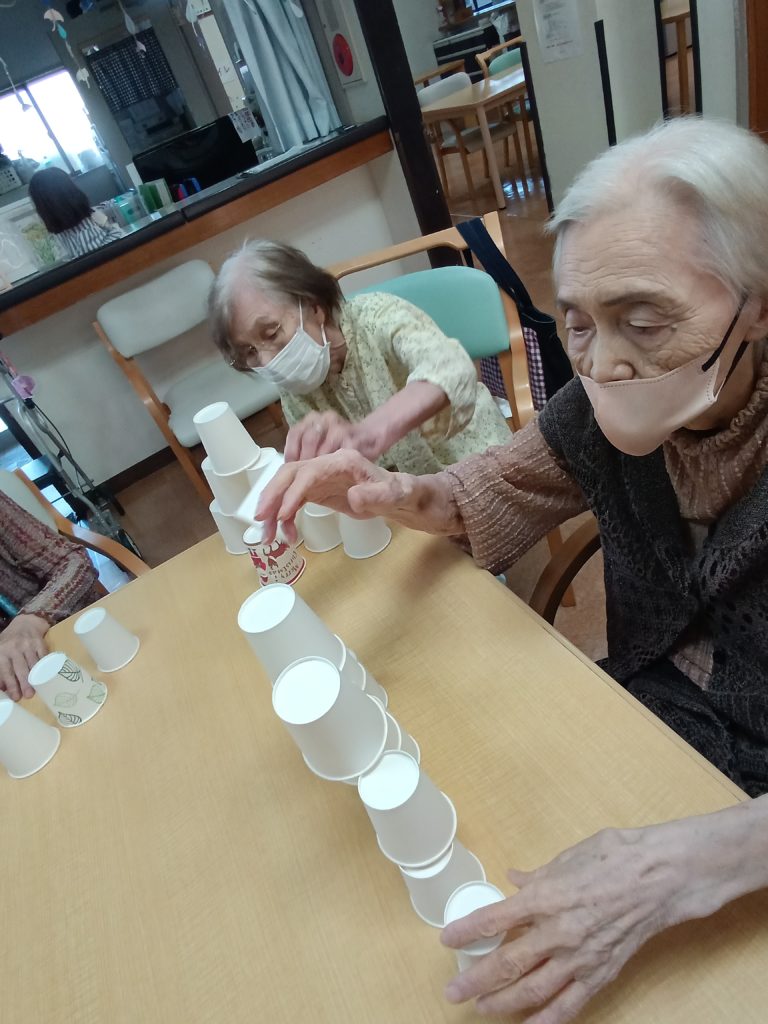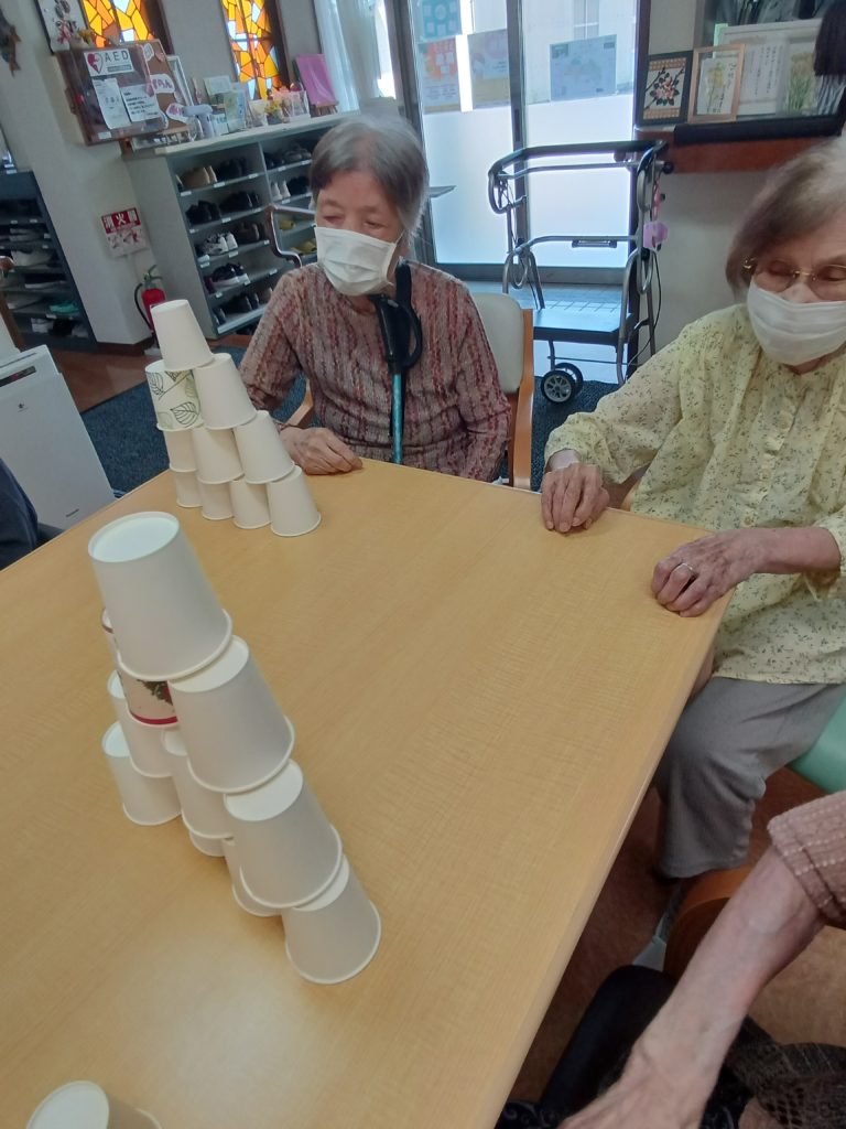 今日のレクリエーションは紙コップタワーを使いました(*^^)v
