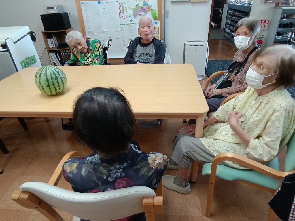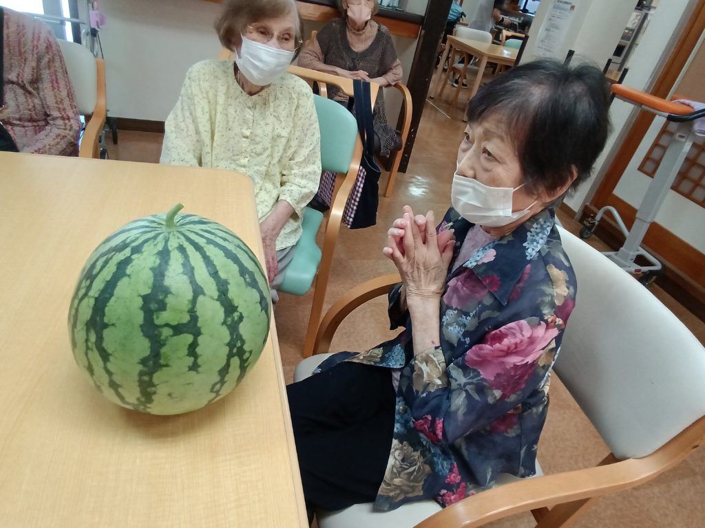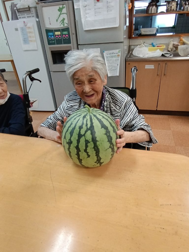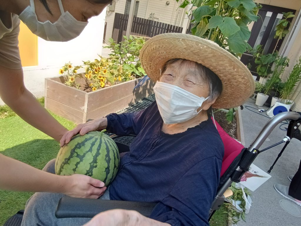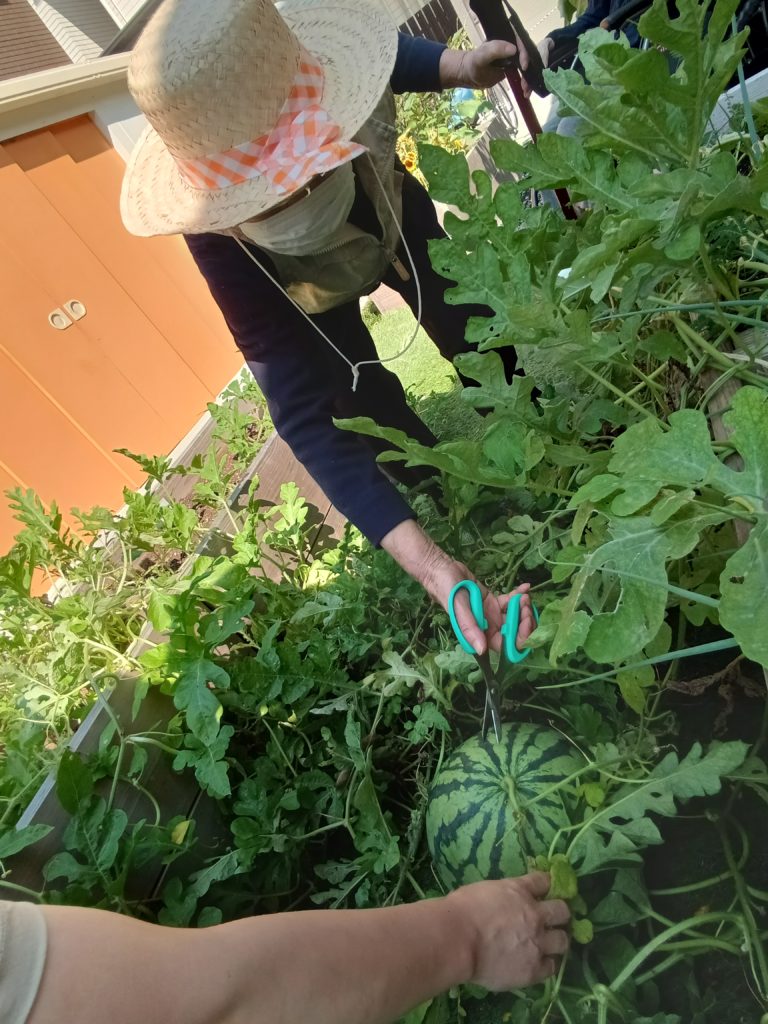 収穫したスイカを見て皆様はじける笑顔でした💛💛💛