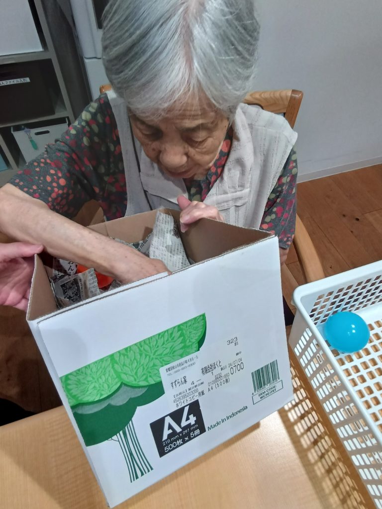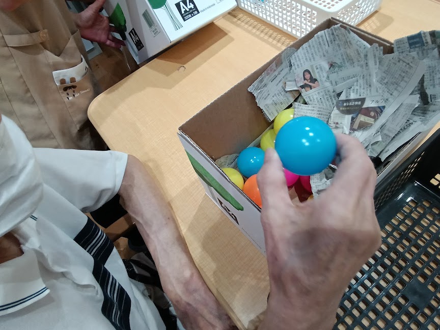 箱の中に入っているカラーボールを指示通りに取り出していただきます😌