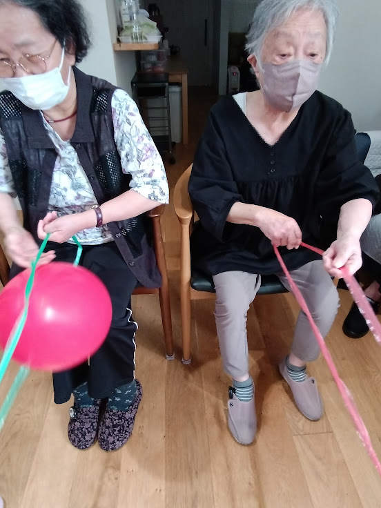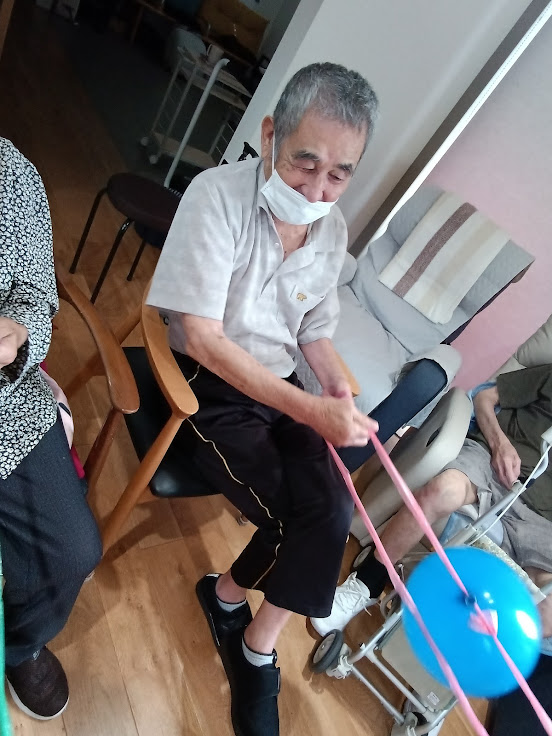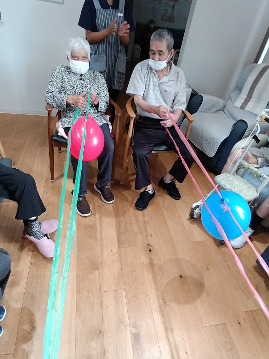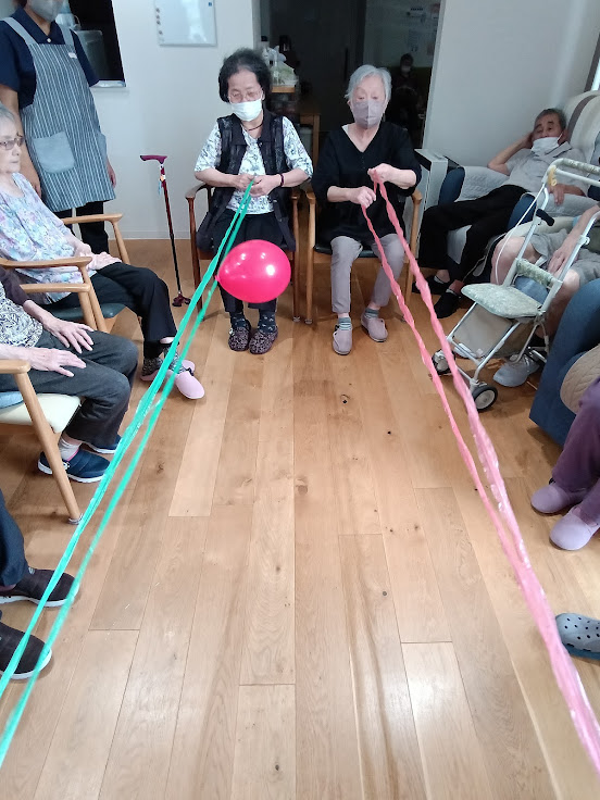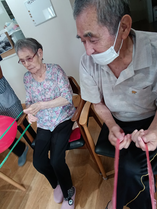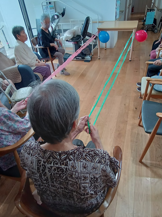 👆このように紐を手繰り寄せ、風船を一周させる速さを競います✨