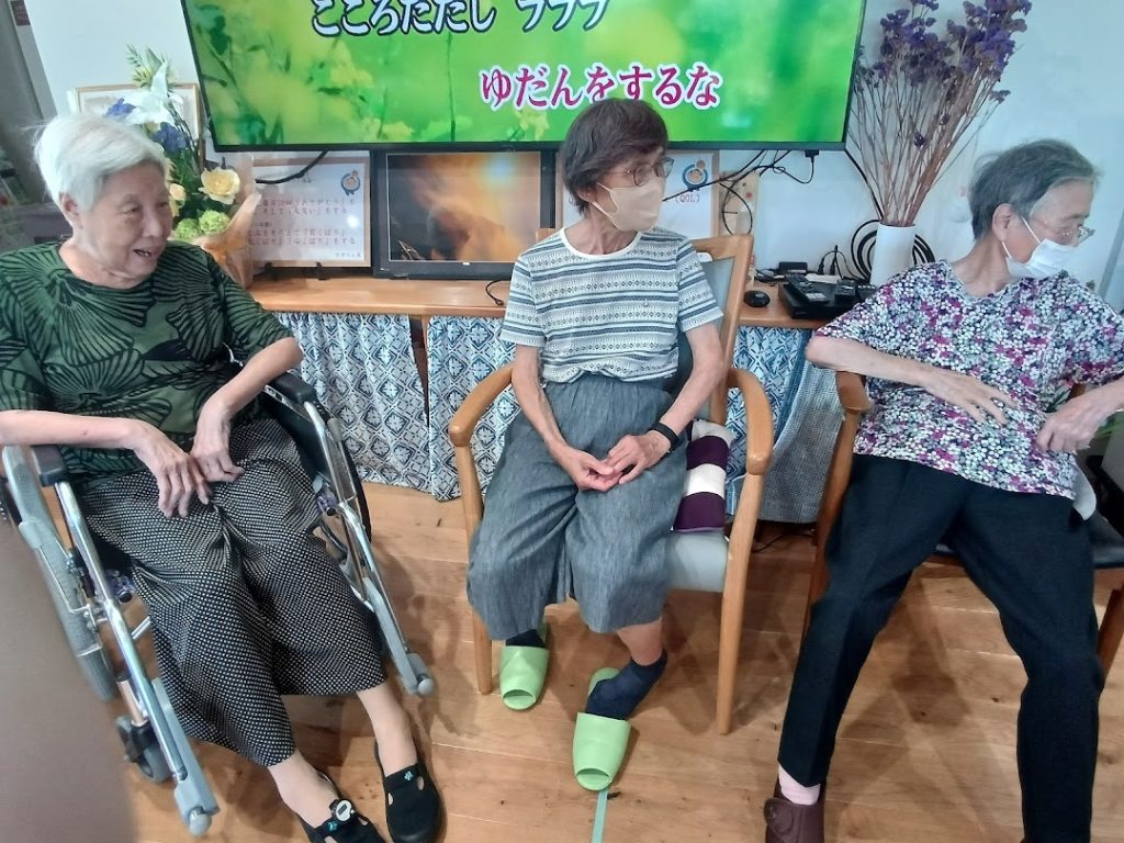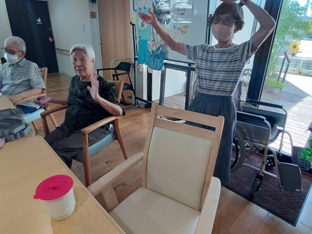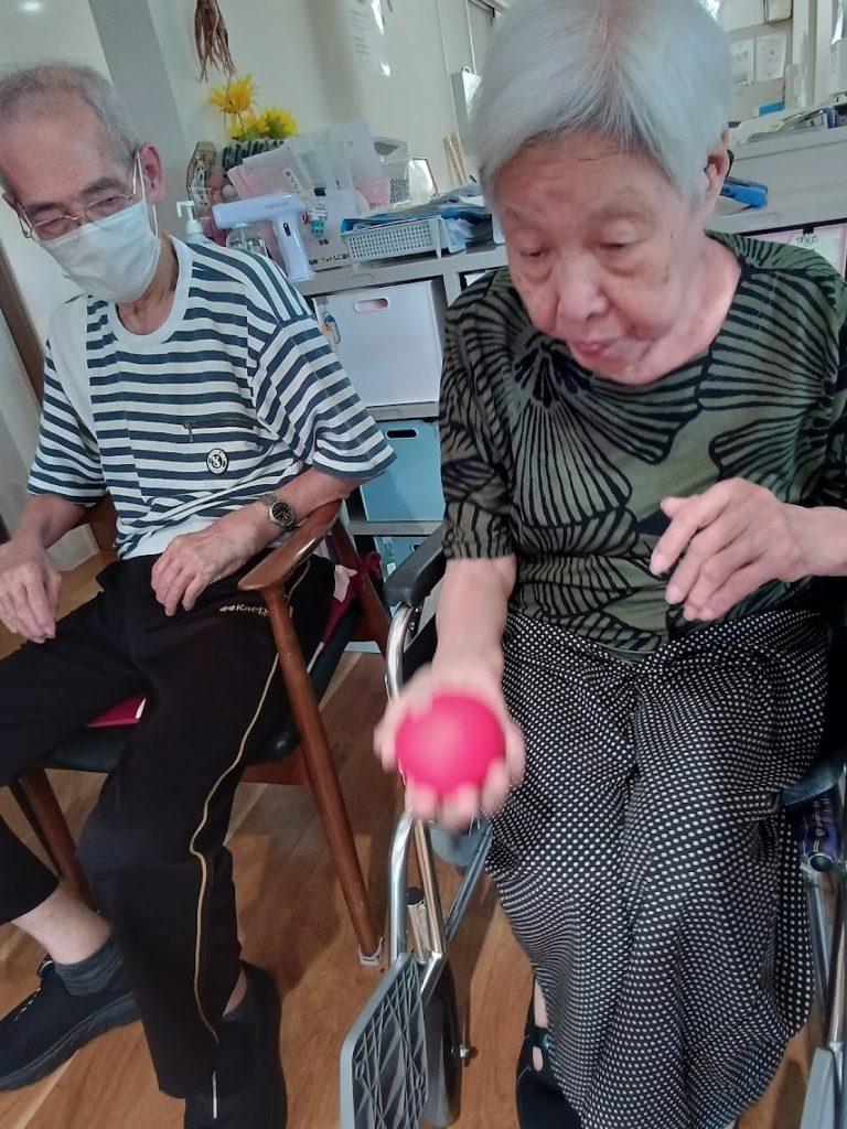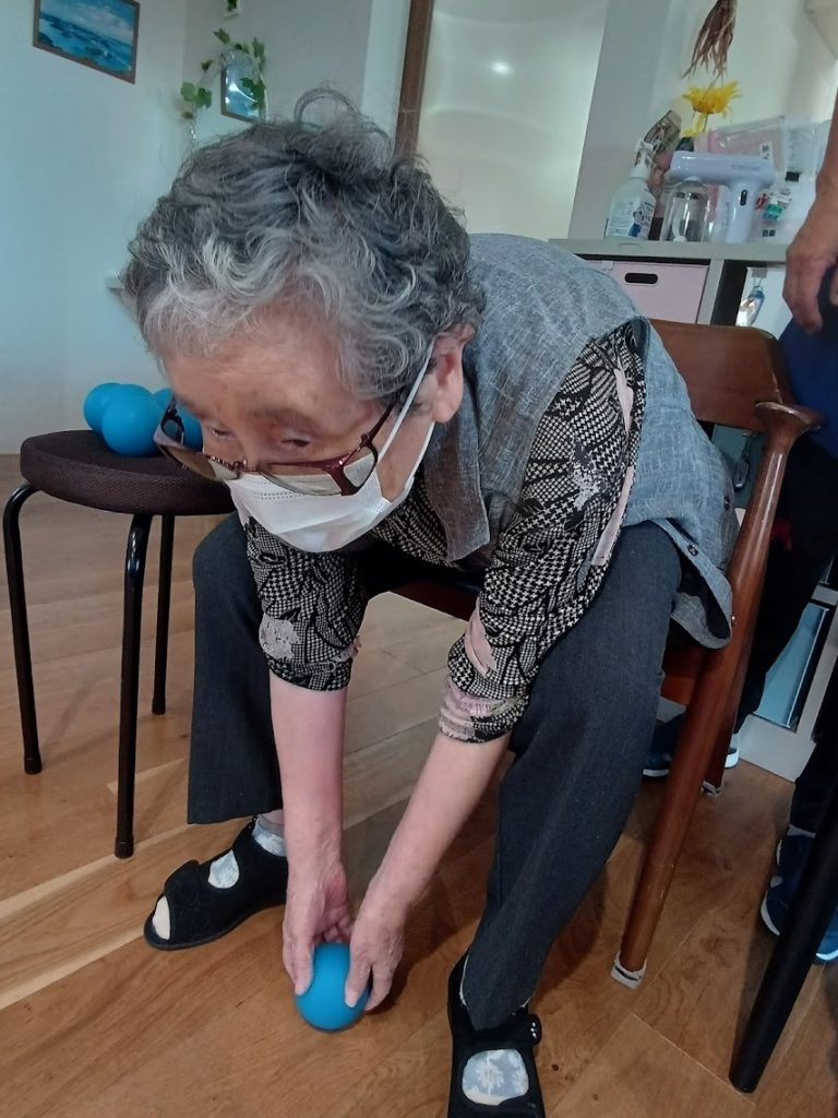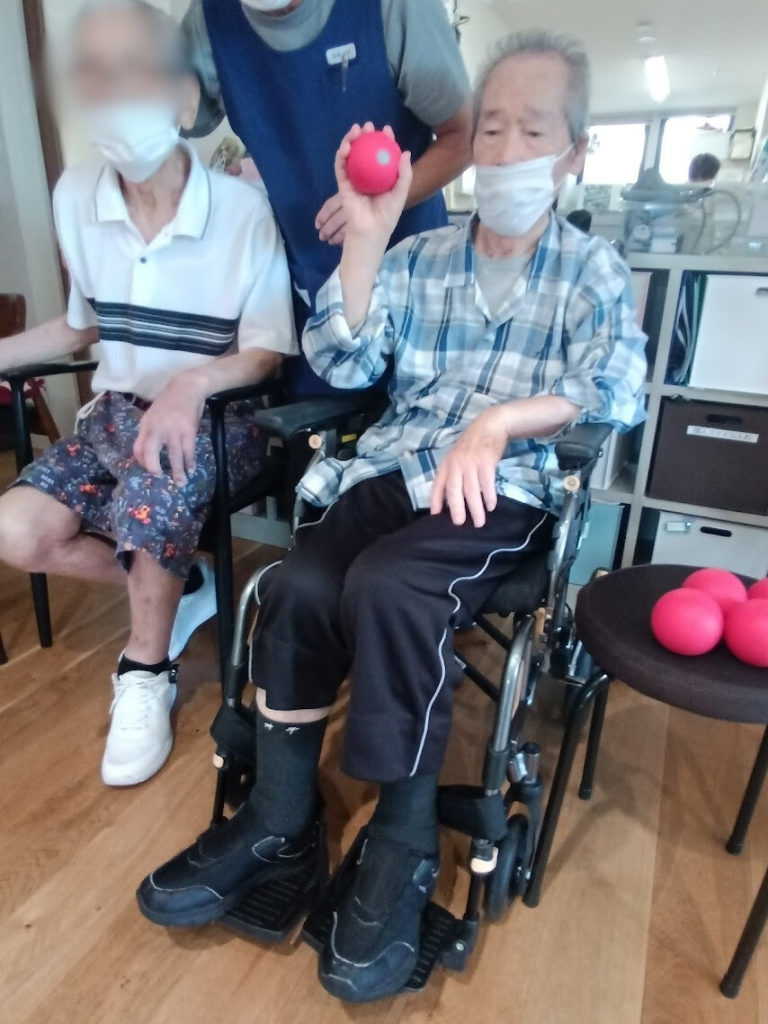 投げたご本人だけでなく、見ているご利用者様と職員も一緒になってリアクションしています🤣