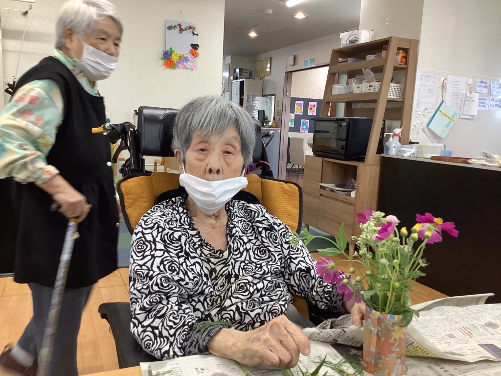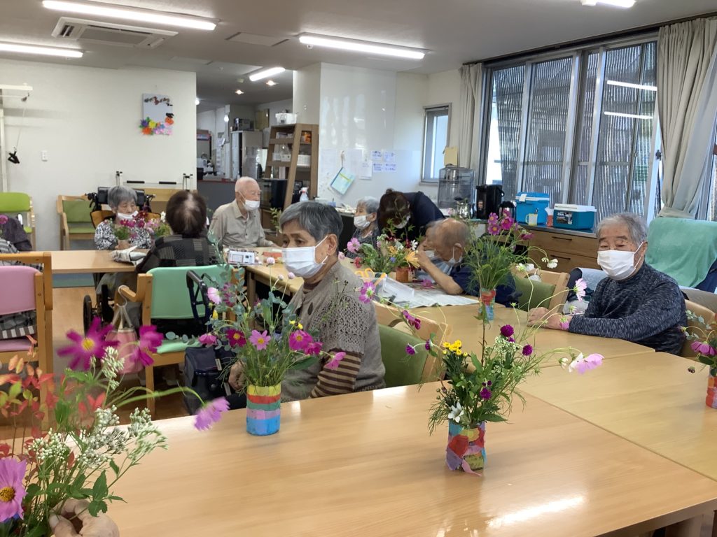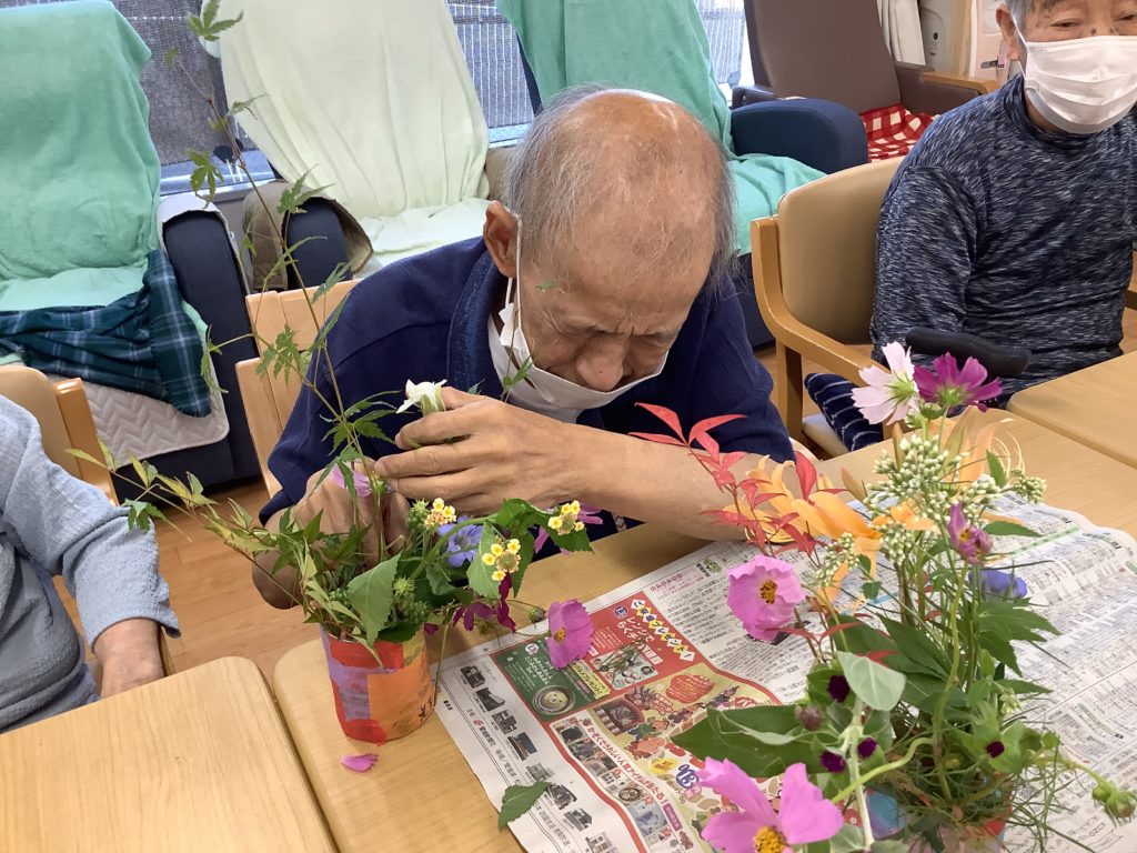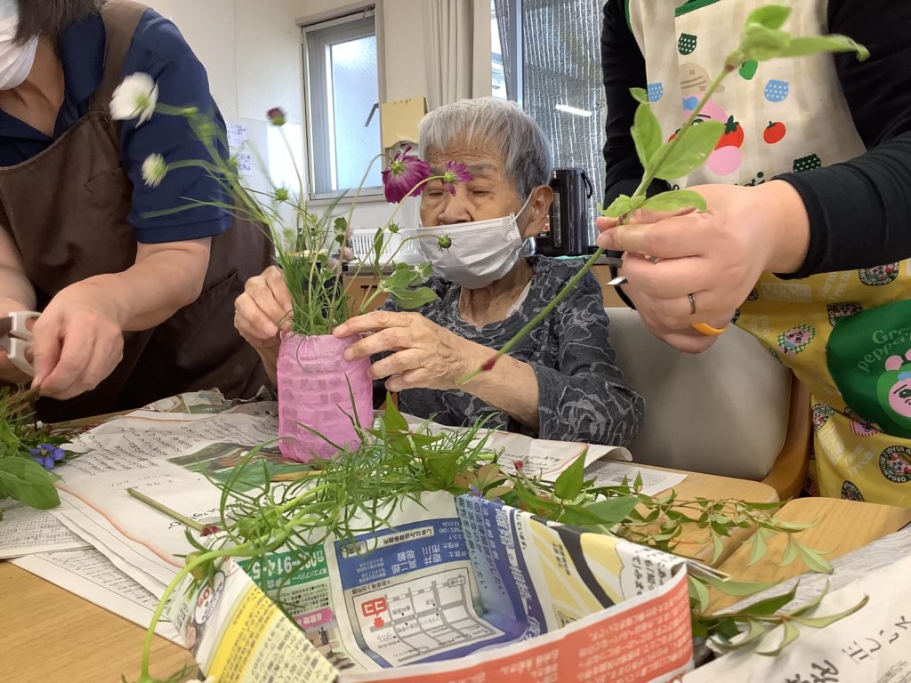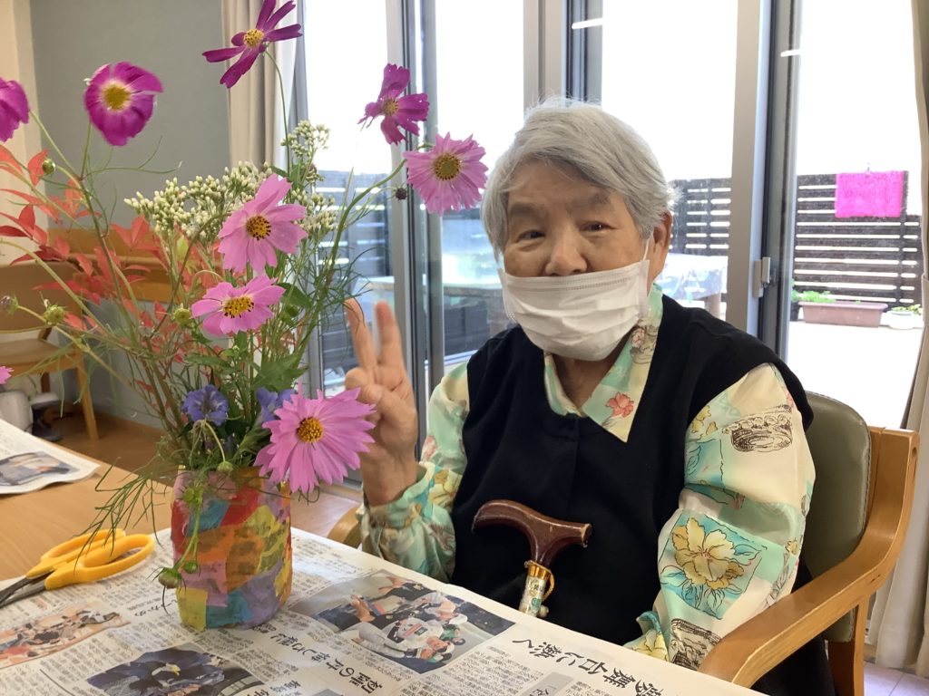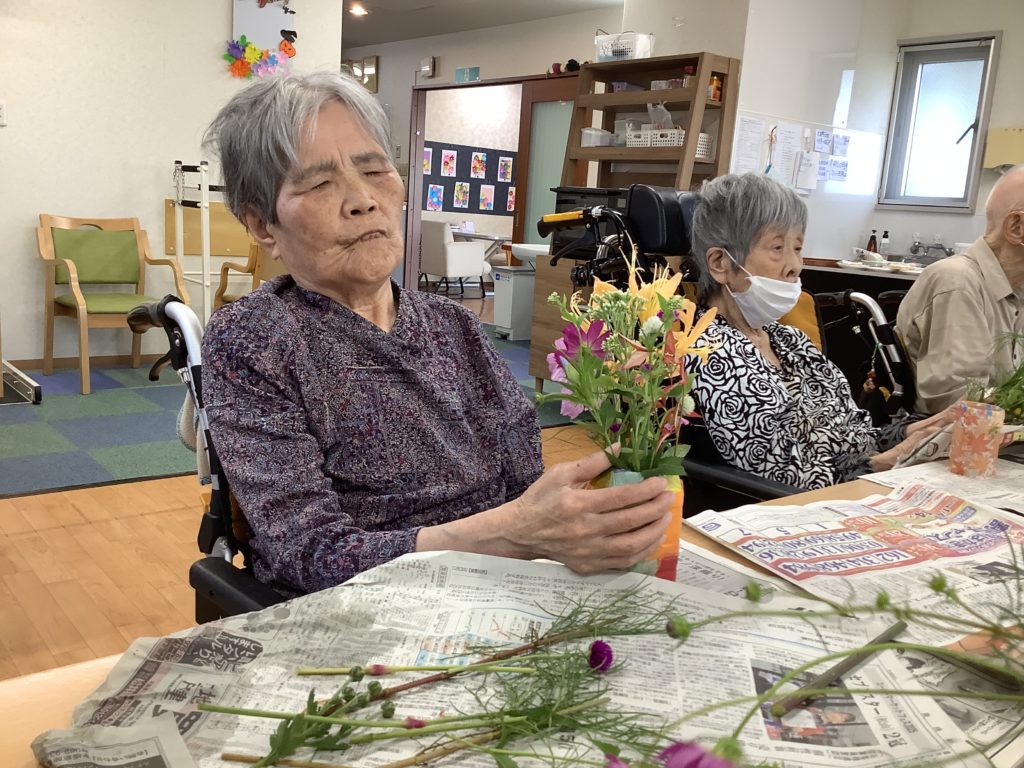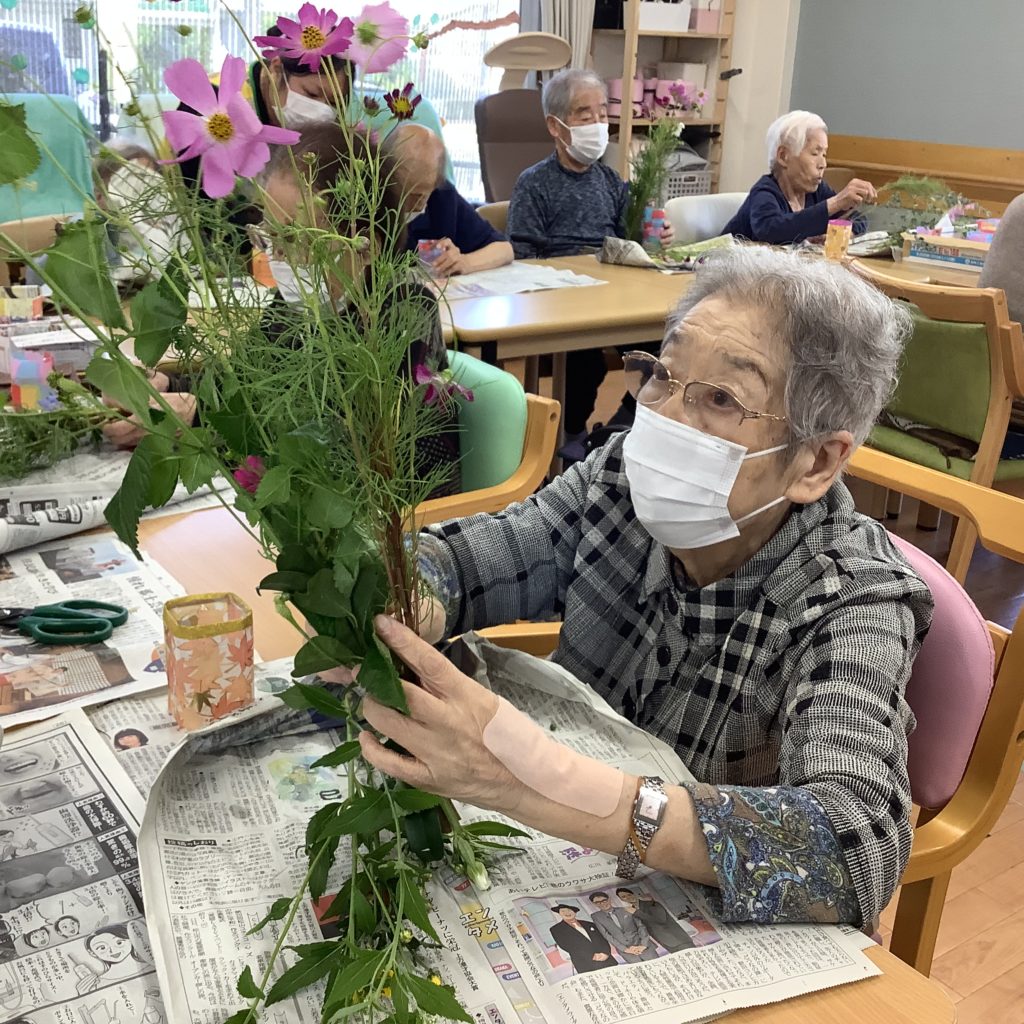 「綺麗に生けとるなぁ~」「私のはどう?」と褒め合い、「また生け花したい」との声が聞こえました(ノ◕ヮ◕)ノ*:・゚✧