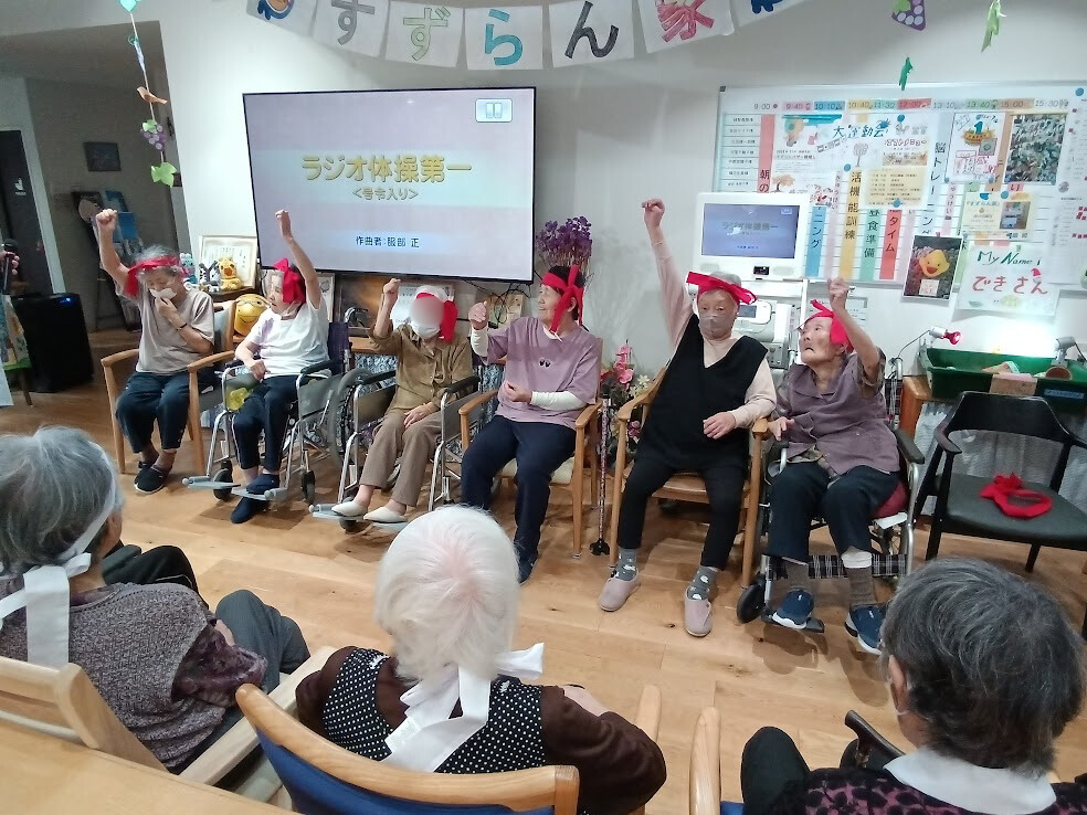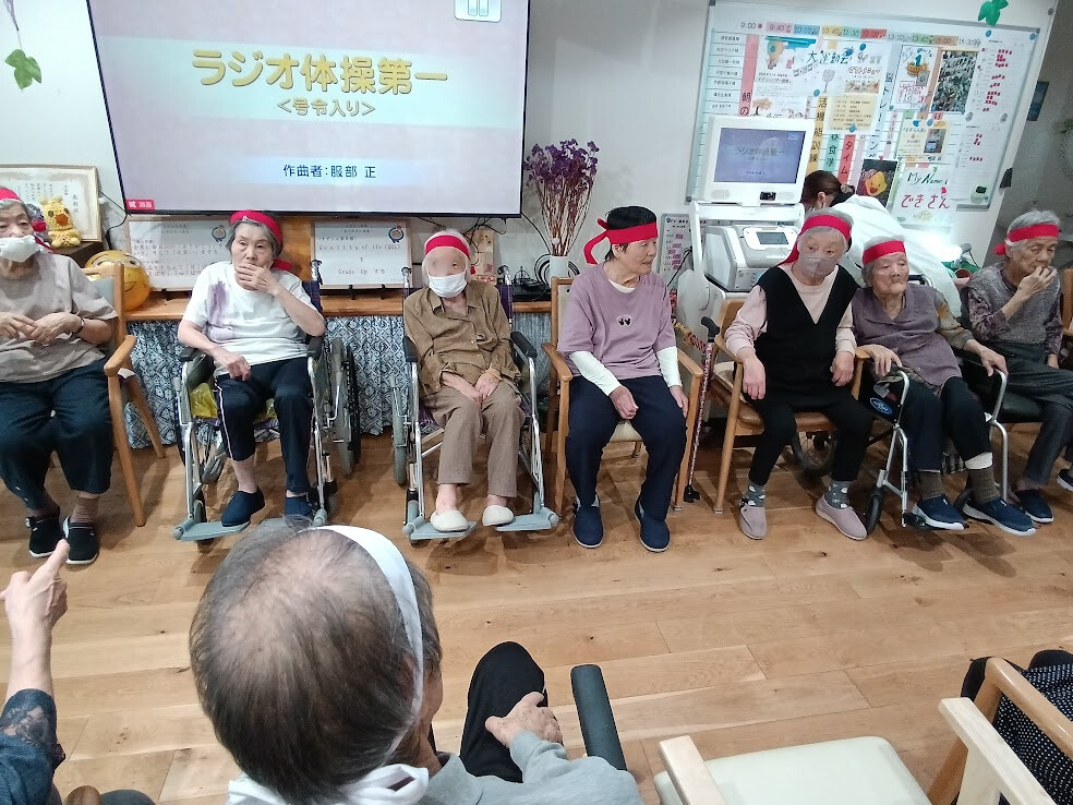 ラヂオ体操をして