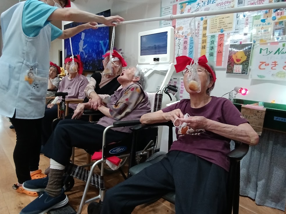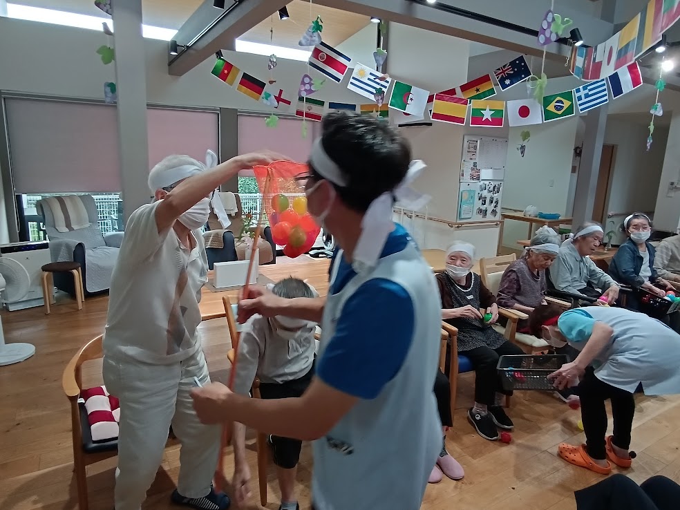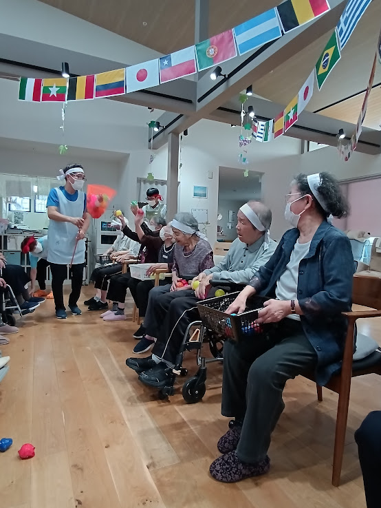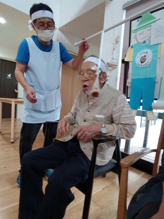 サランラップの芯をドンドン通して送っていく種目です👀