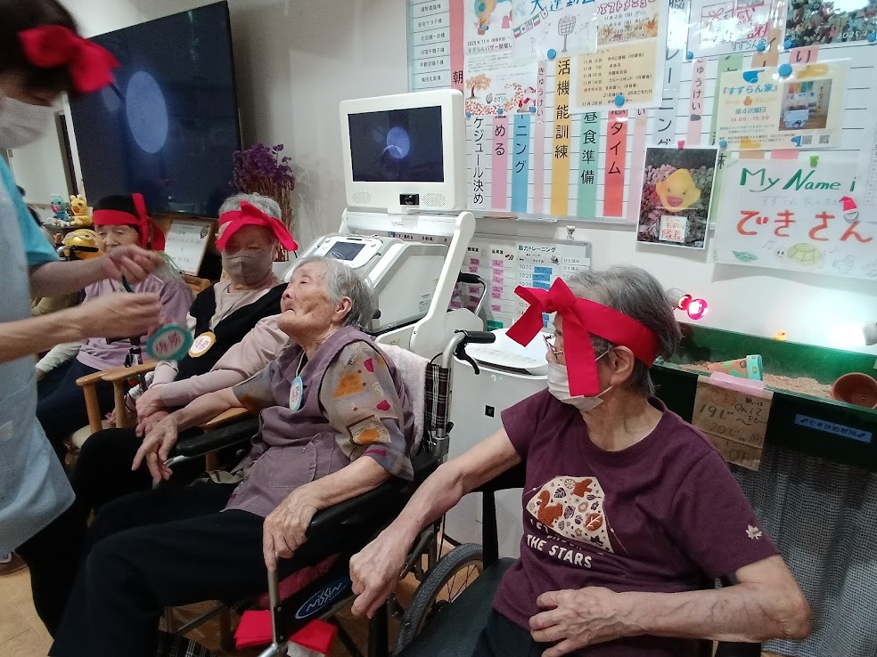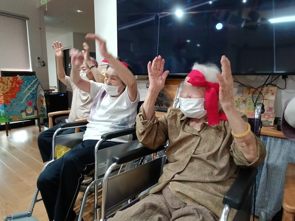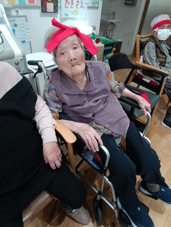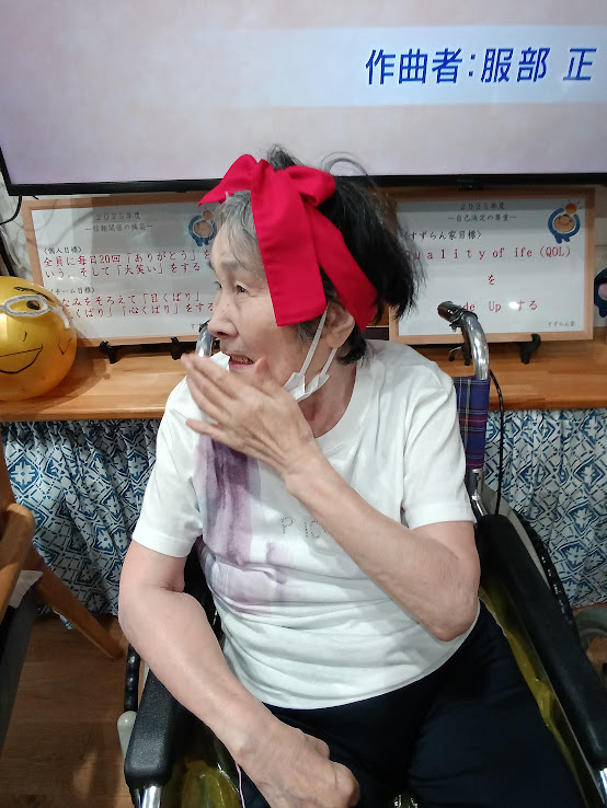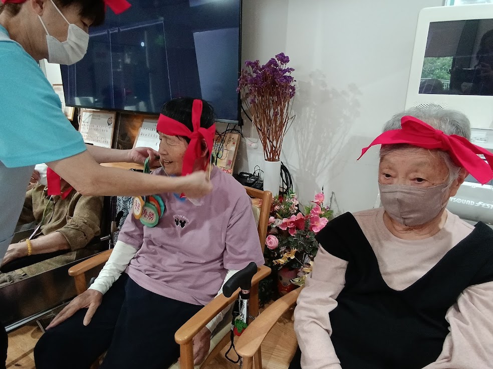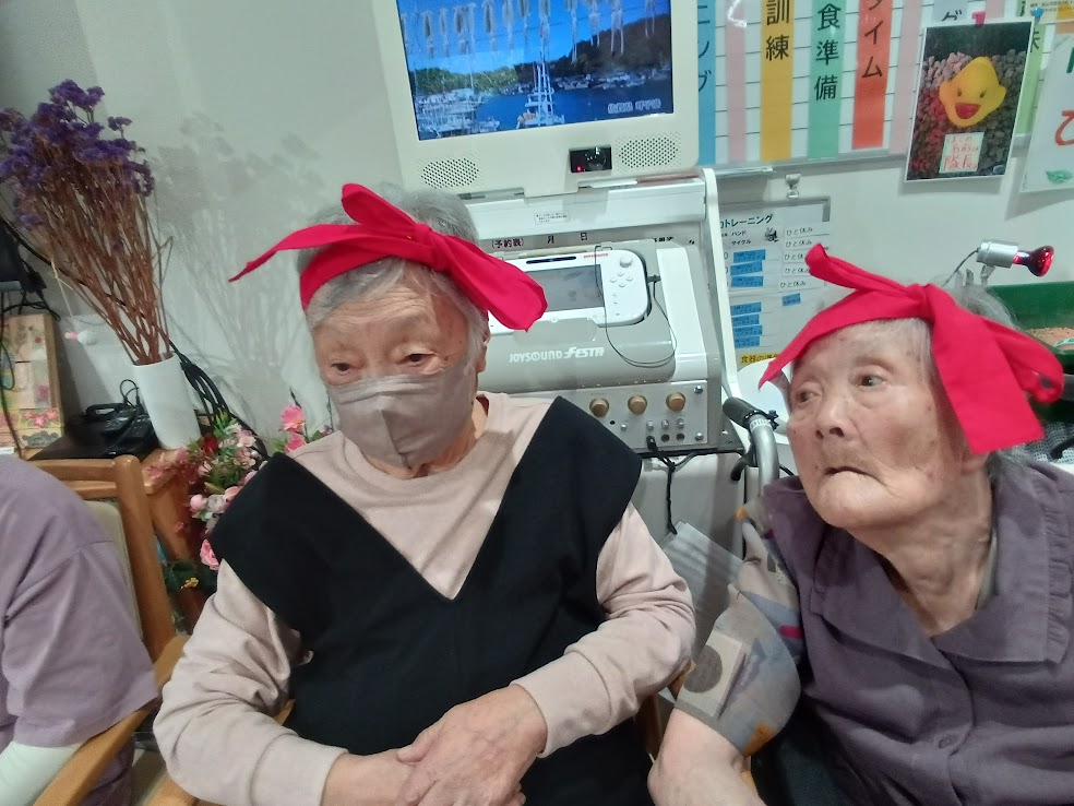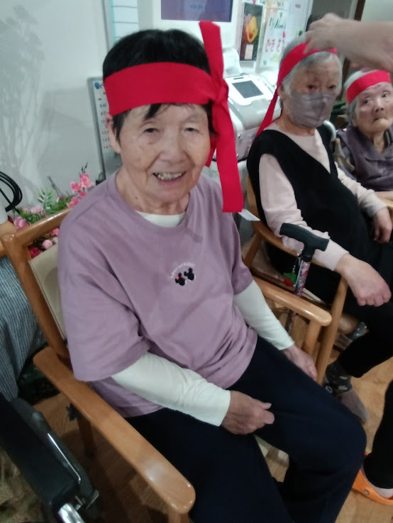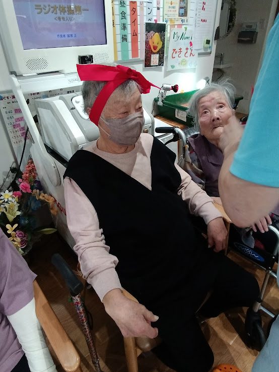 赤組は 赤い鉢巻を可愛く🦋結びに~😊