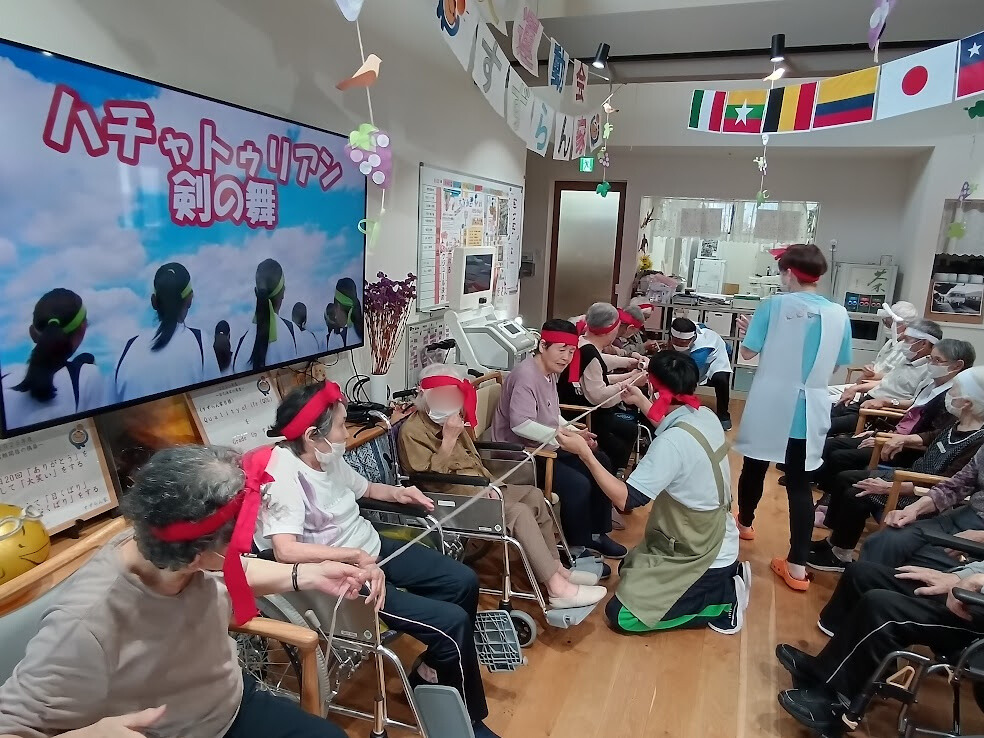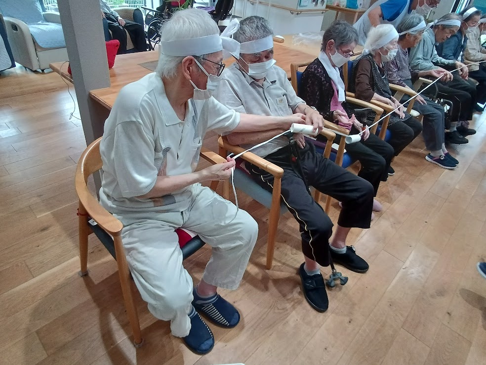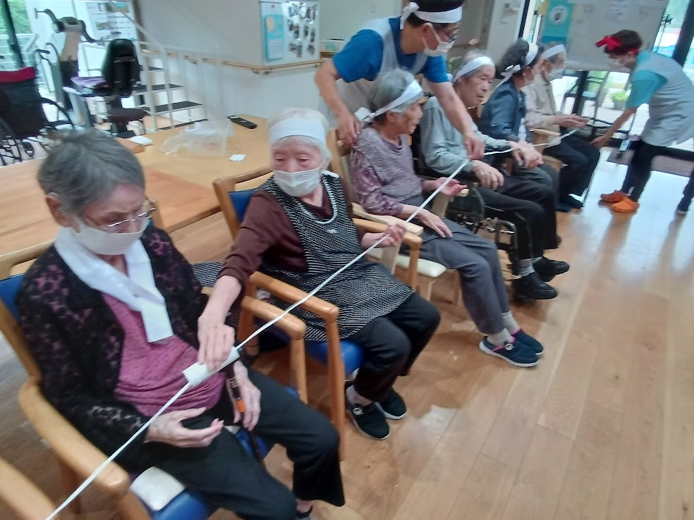 長い紐をチームの皆様で持って頂き