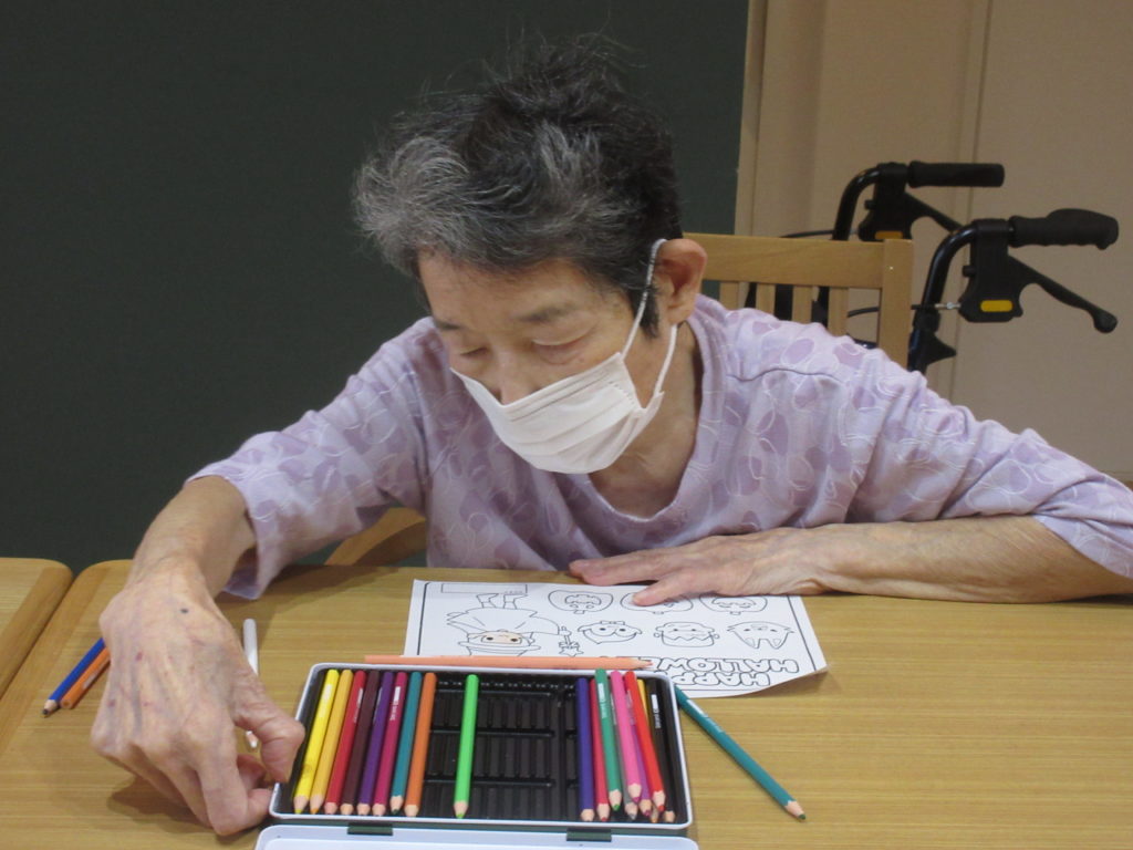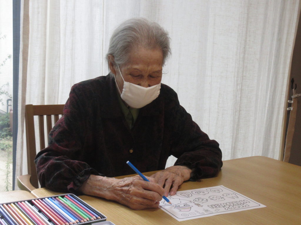 今日は、塗り絵をしたり