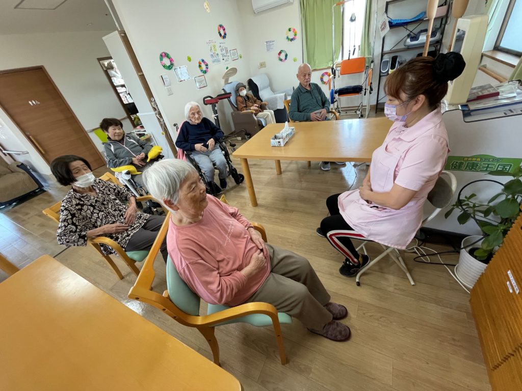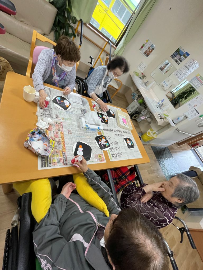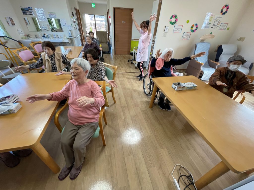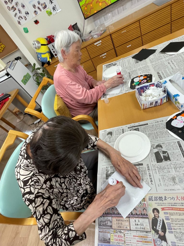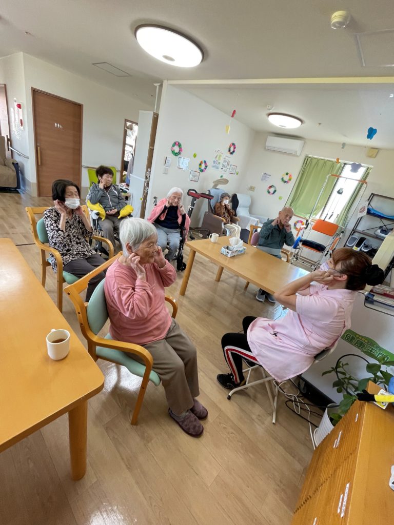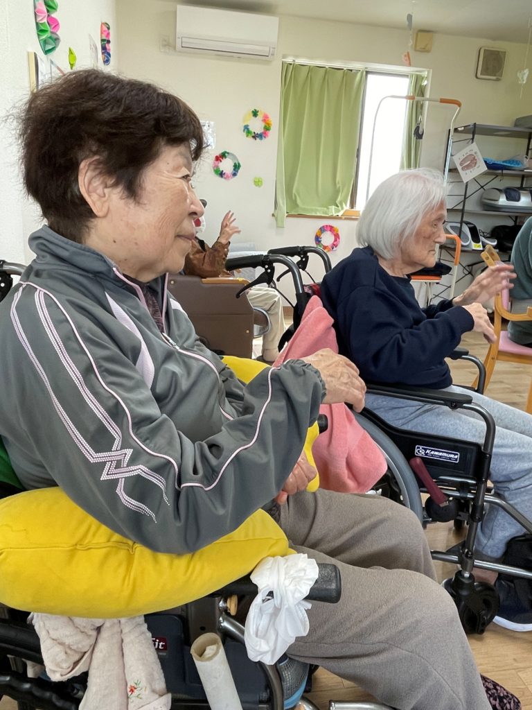 そっと手伝ってあげている利用者さまもおられ