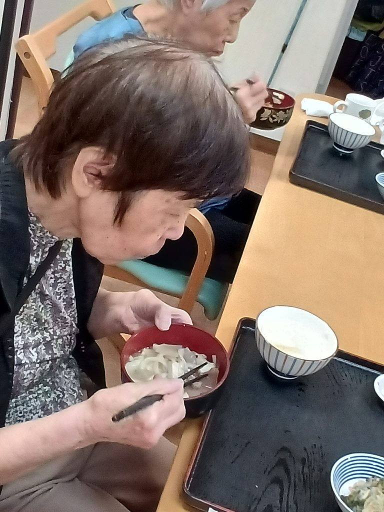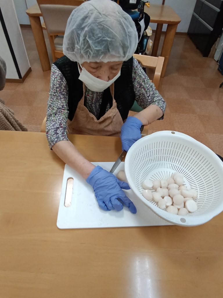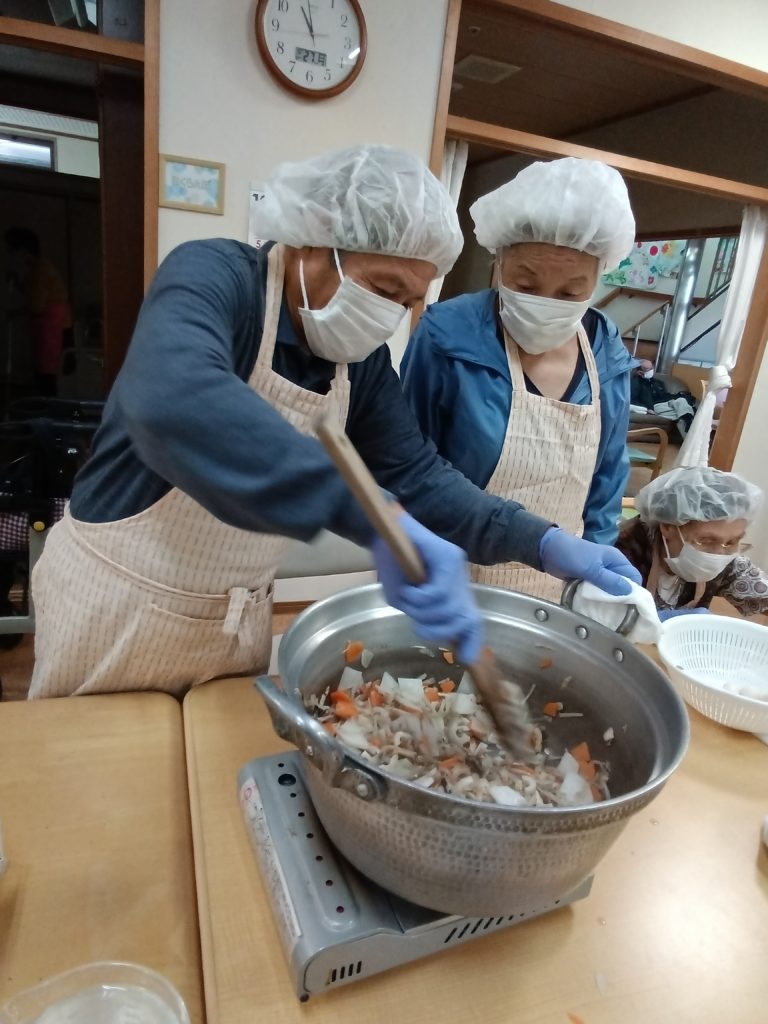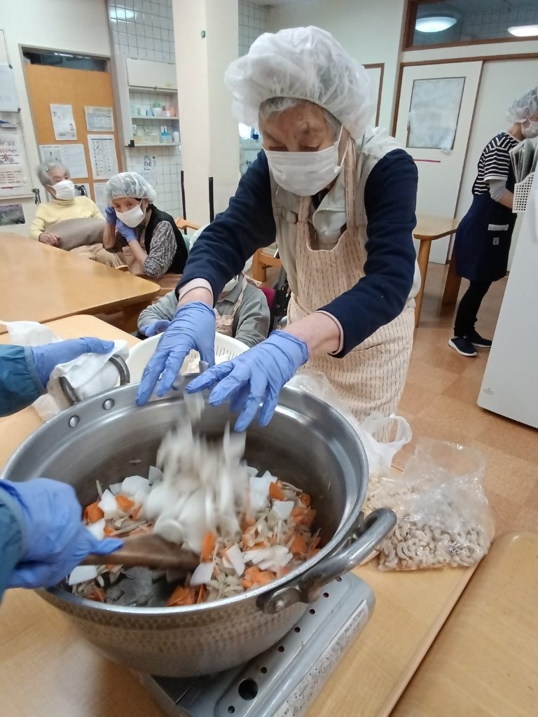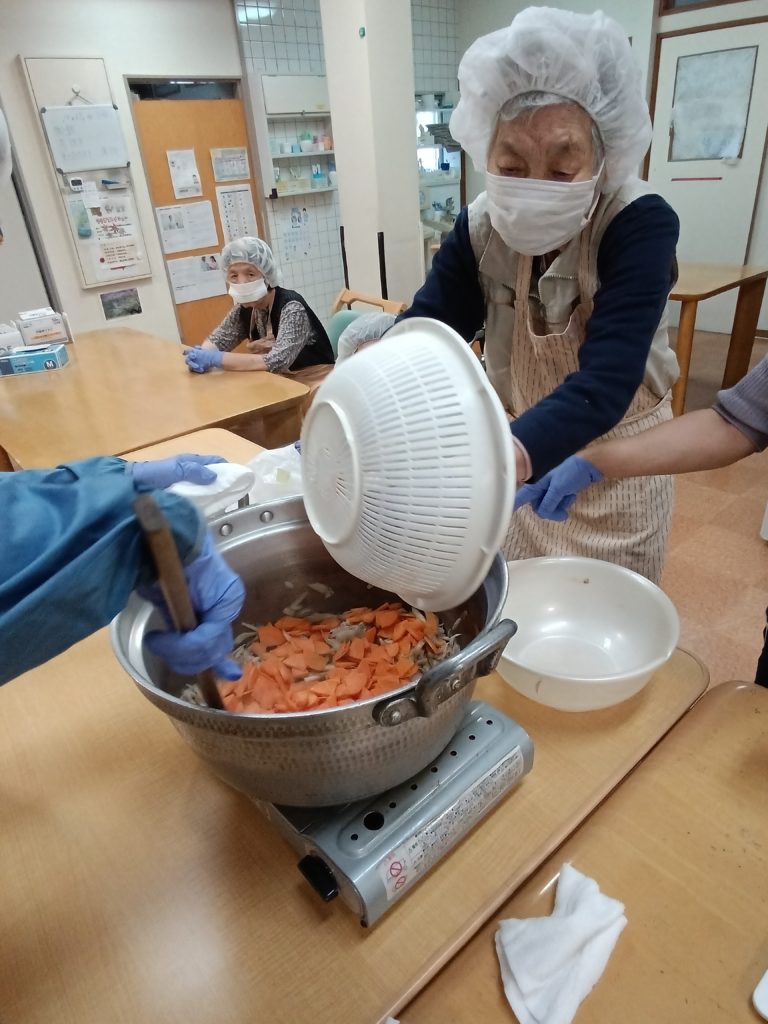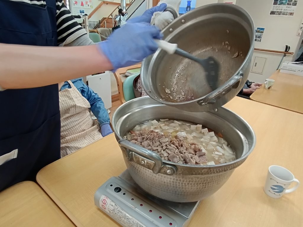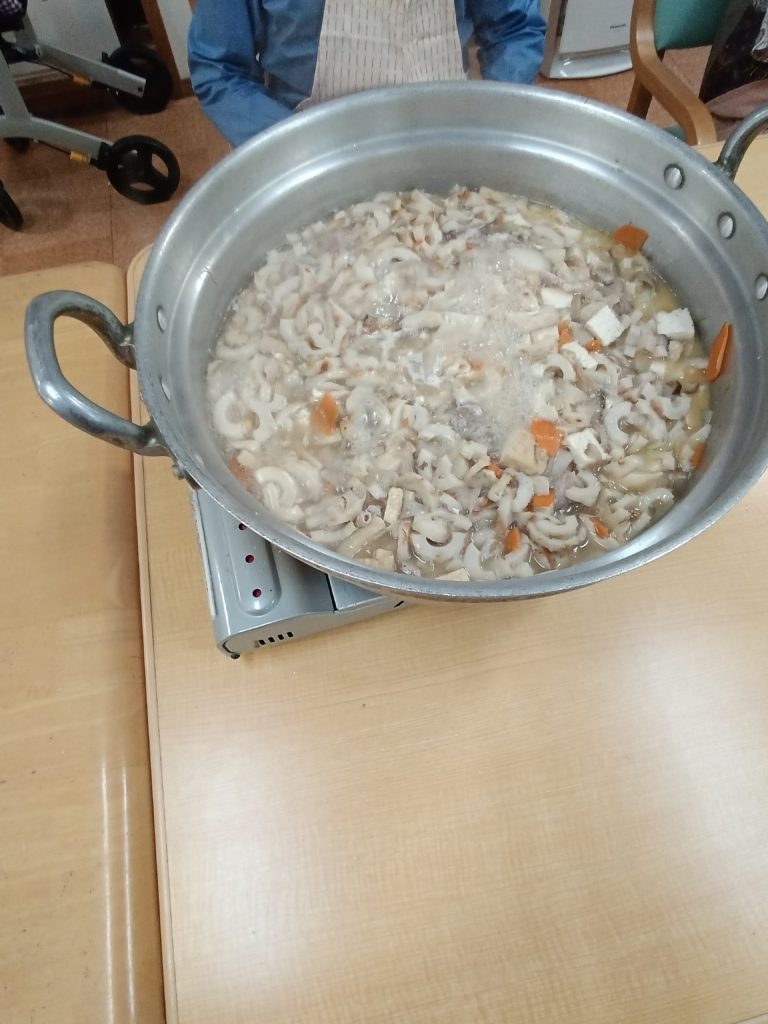 2025.10.27 すずらん通り 芋炊き~調理&実食(#^.^#)~ 今日は、芋炊きを作って実食しました(#^.^#) 昨日切った人参・ゴボウ・大根をごま油で炒め ある程度炒めたら 水を適量入れて ひと煮立ち 油あげ・芋入れて更にひと煮立ち みりん・醤油・砂糖・塩で味を調整 味見をし うどん入れて 再度味見し完成(‘ω’) ご利用者様、美味しく召し上がられました!(^^)! 記事一覧へ戻る 各施設ごとのすずらん便りはこちらから