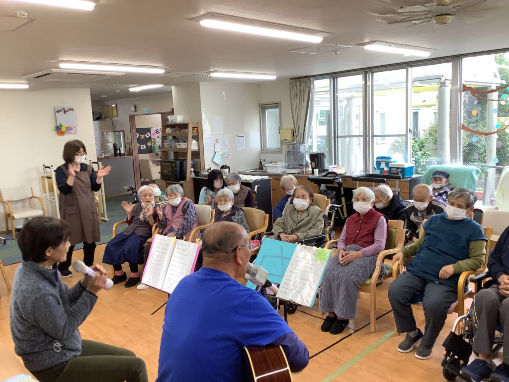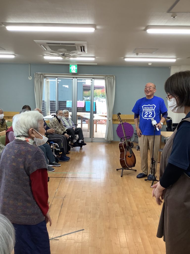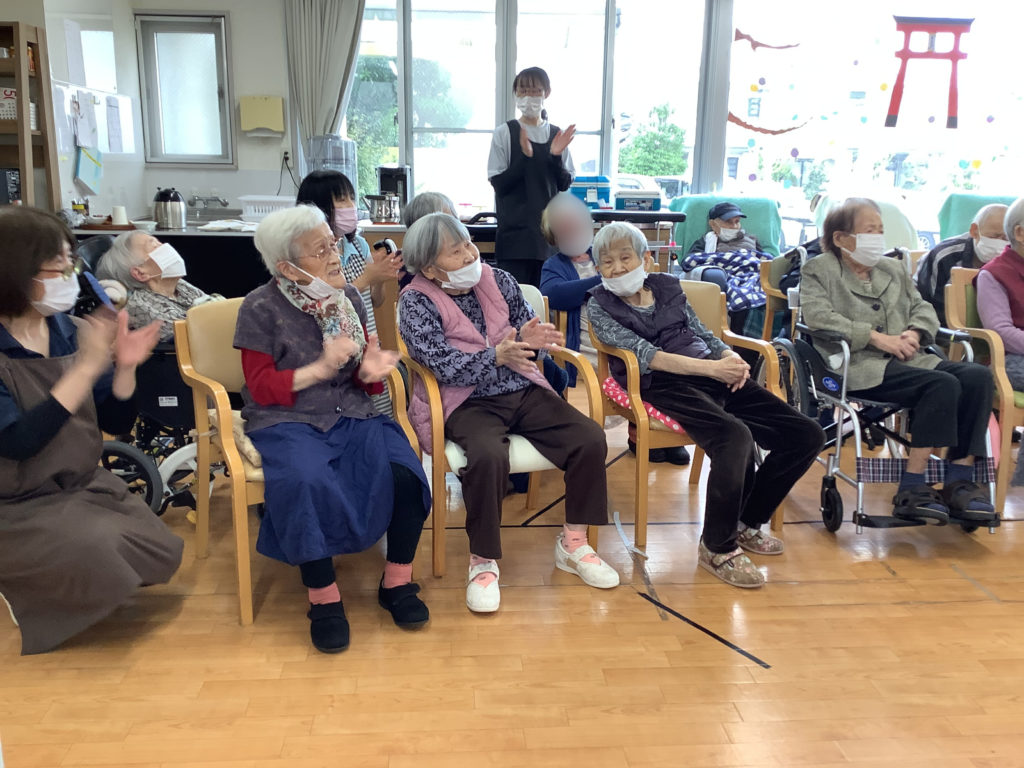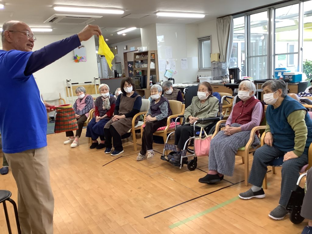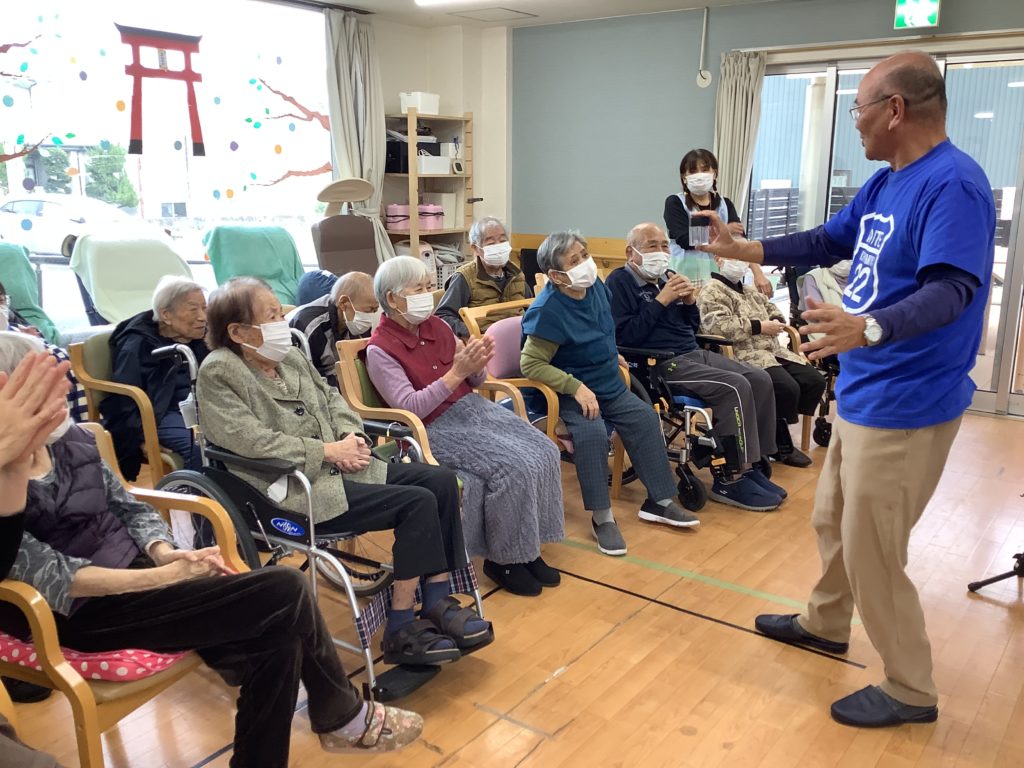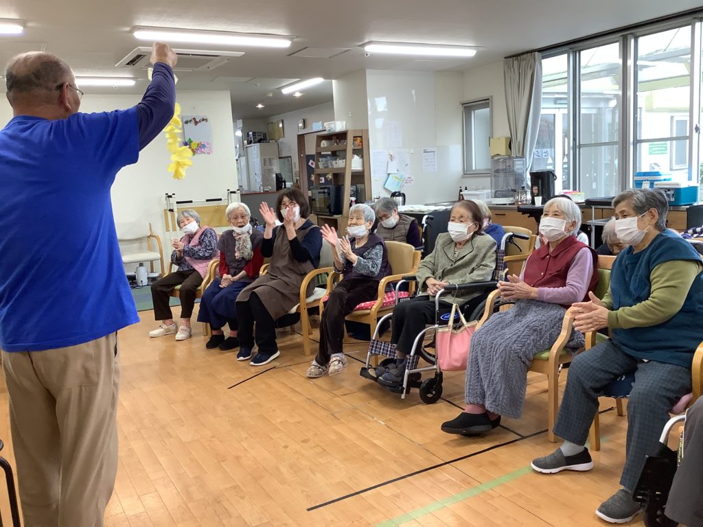 今日は、ボランティアの笑皆亭凡凡さんが夫婦で来てくださり、歌とマジックを披露してくださいました😄