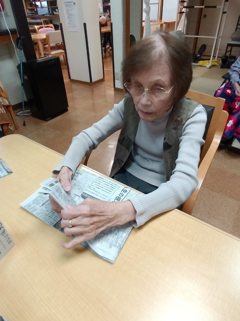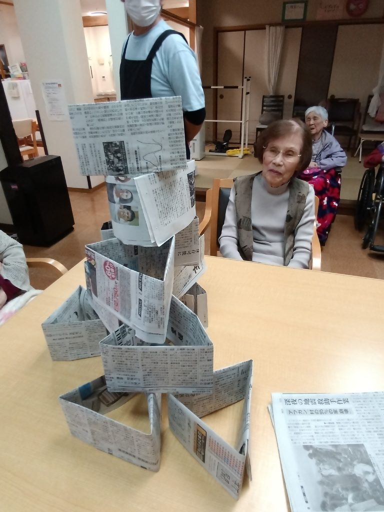 2025.11.12 すずらん通り 新聞タワー📰 新聞タワーの行事を実施しました(‘ω’)ノ 新聞を2分の1に裂いて、 半分に折ってさらに折っていき 右隅を1センチほど山折り 3分の1ずつ折り目つけて 右端に挟み込んで三角形になったら 完成!! 新聞紙をどれくらい積み重ねれるか 競争されました✌ 記事一覧へ戻る 各施設ごとのすずらん便りはこちらから