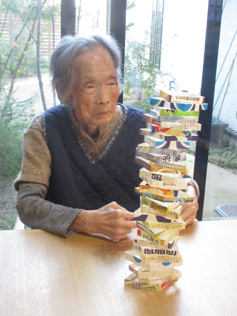 牛乳パックで作った輪をすごく高くまで積んでいる方も居られました。