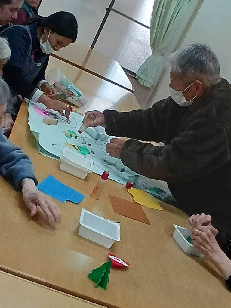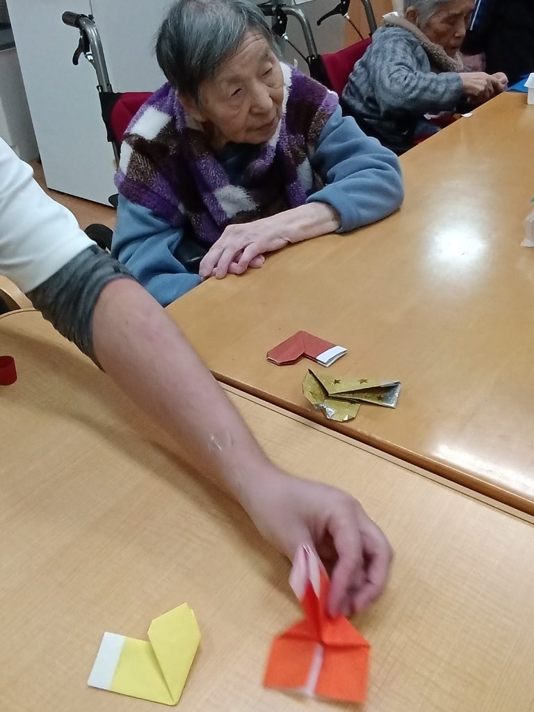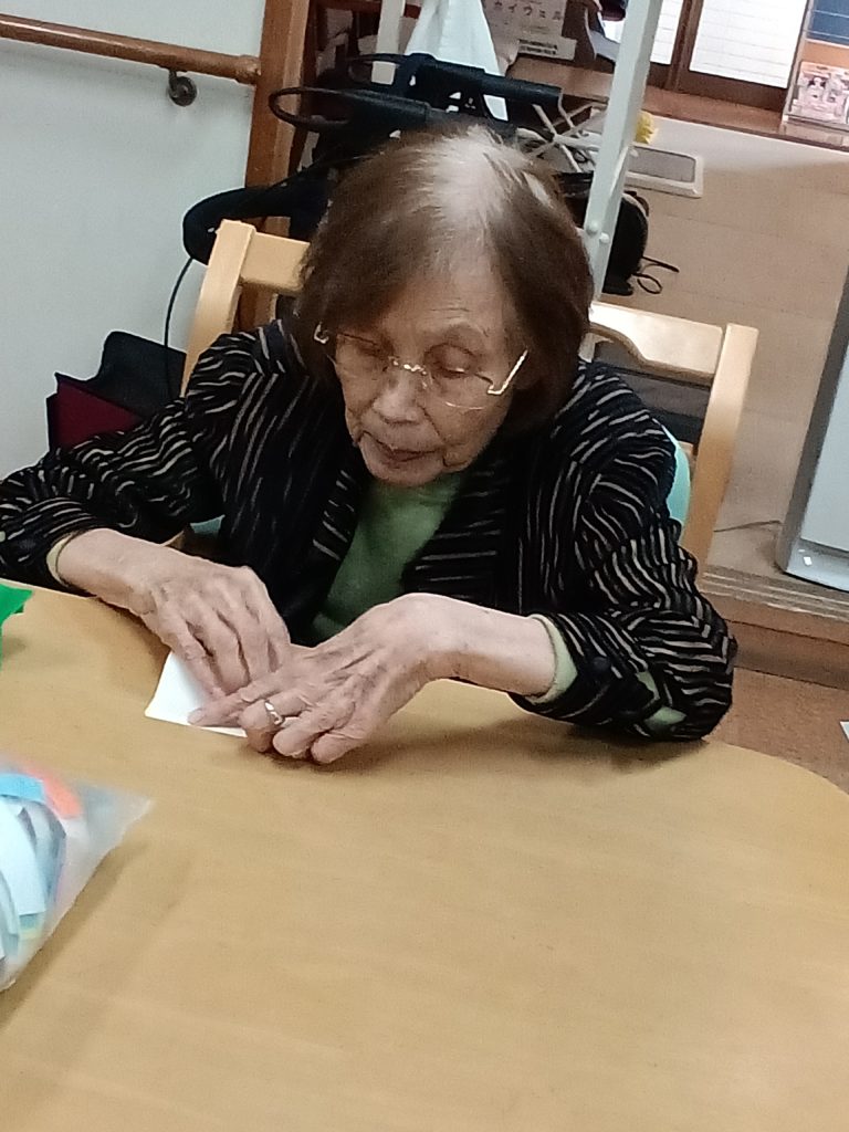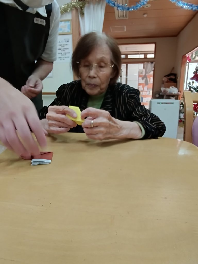 職員が折っている折紙を