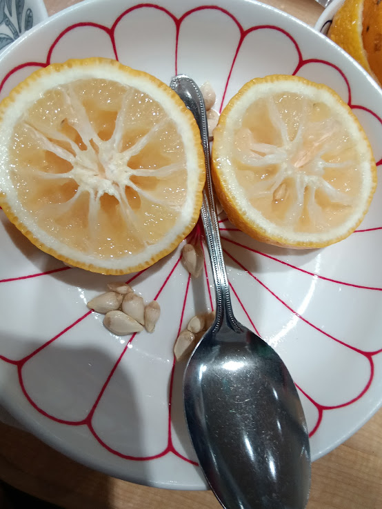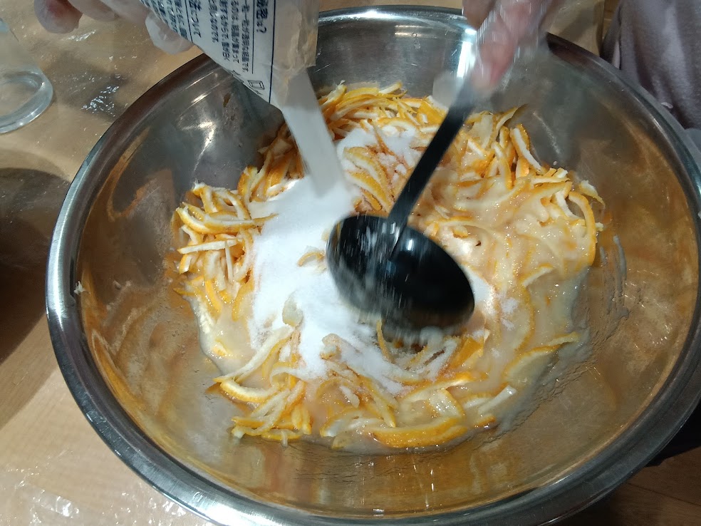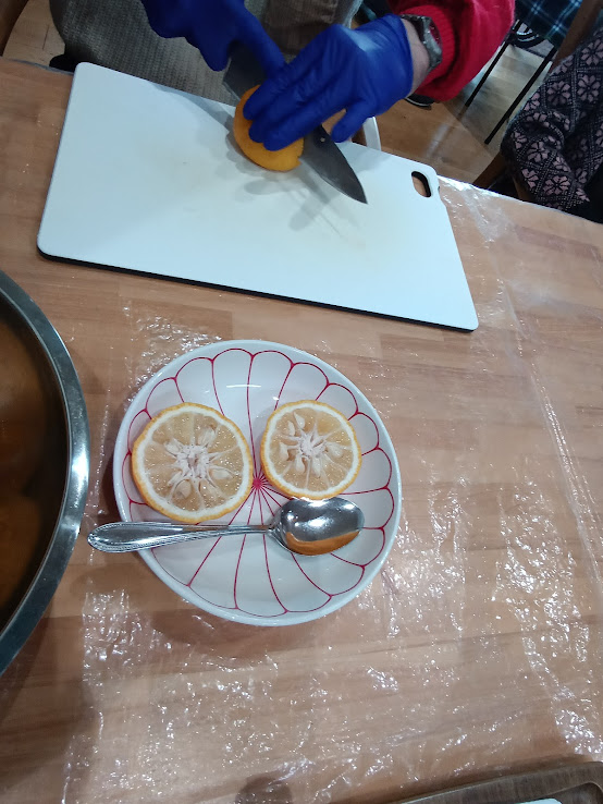 塩水で綺麗に洗ったゆずをカットしていただきました✨