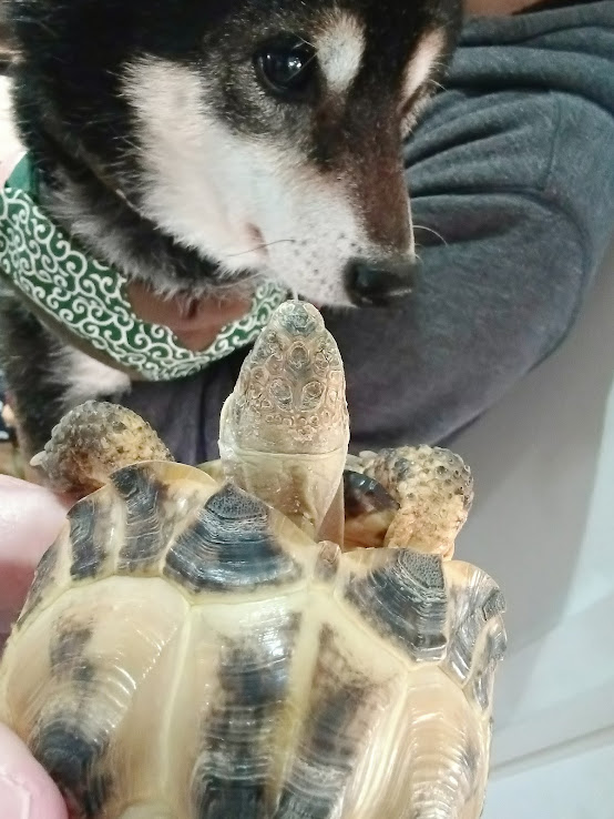 🐕君も🐢君もお互い興味津々です👀👀