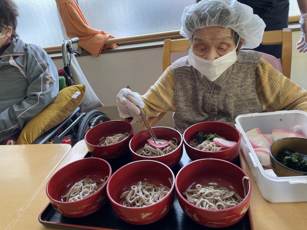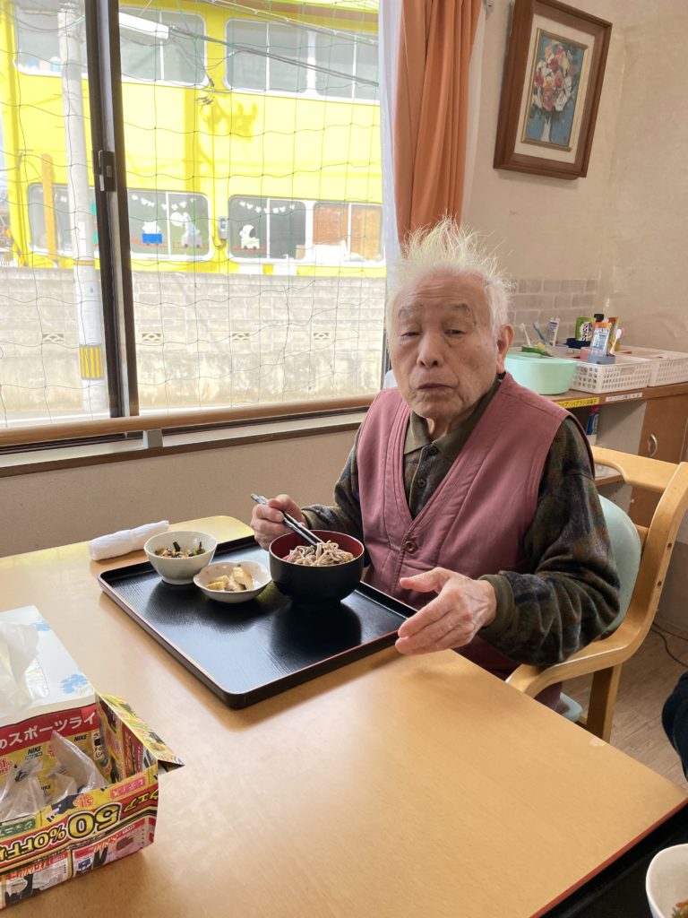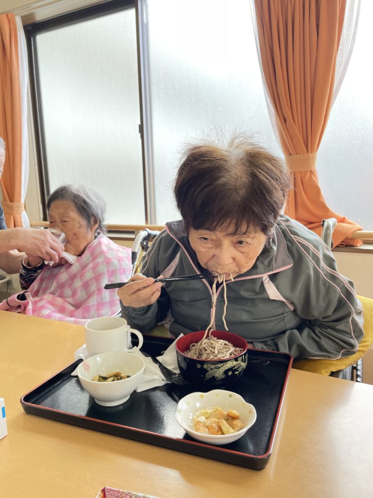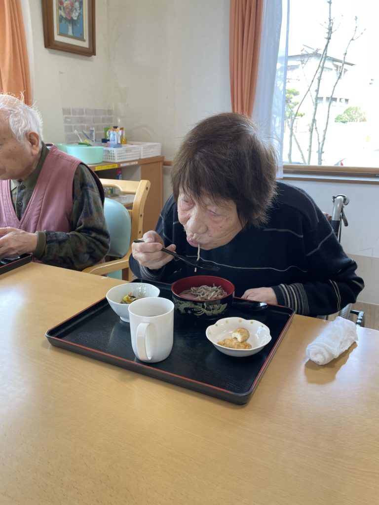 昼食メニューは年越しそばです。