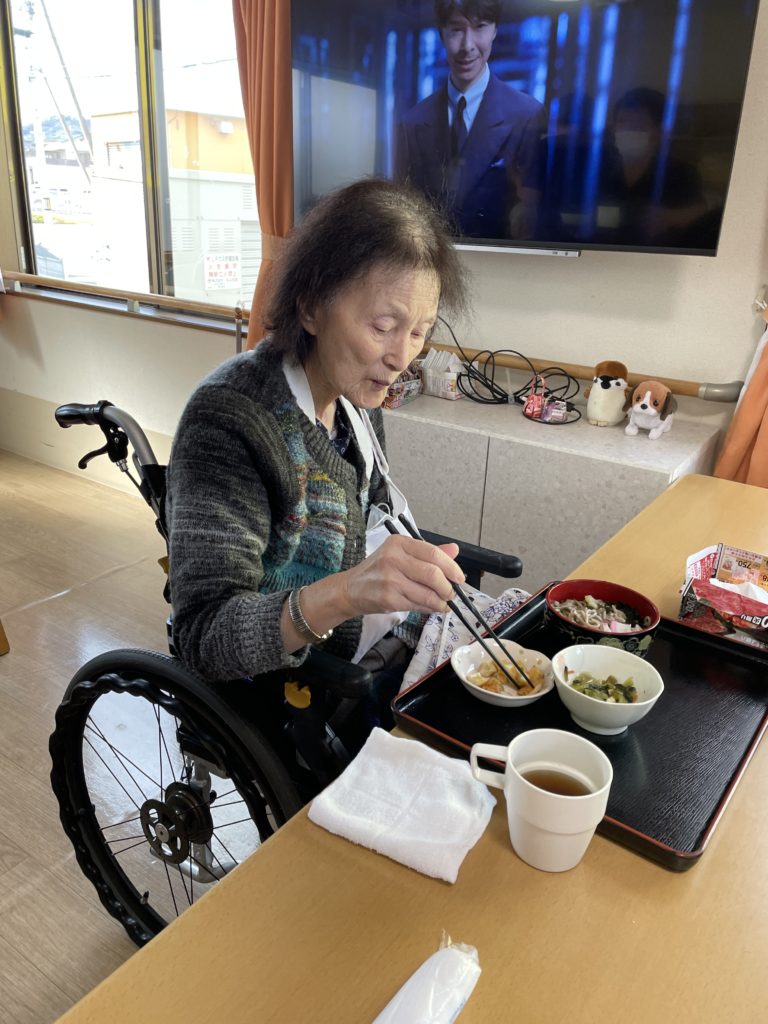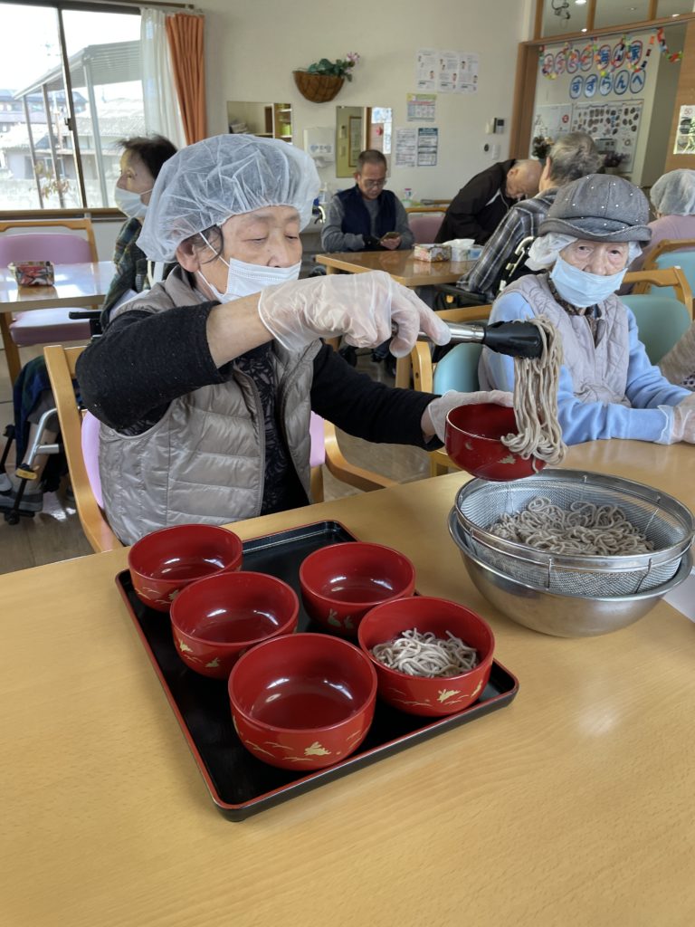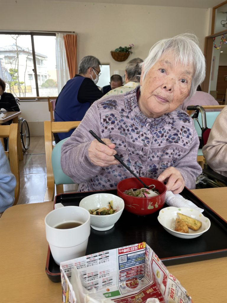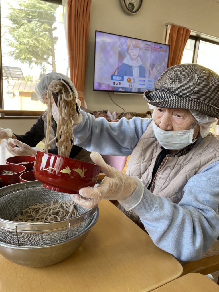 昼食メニューは年越しそばです。