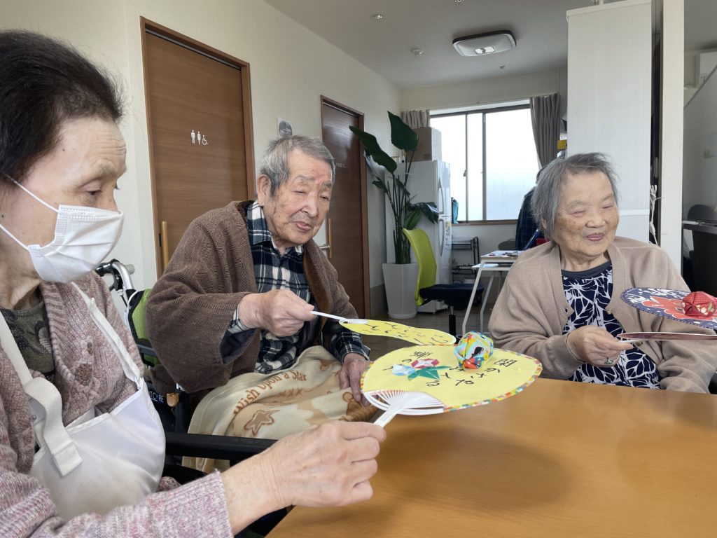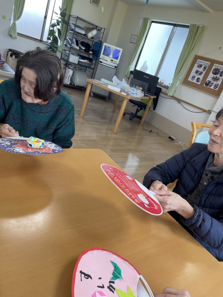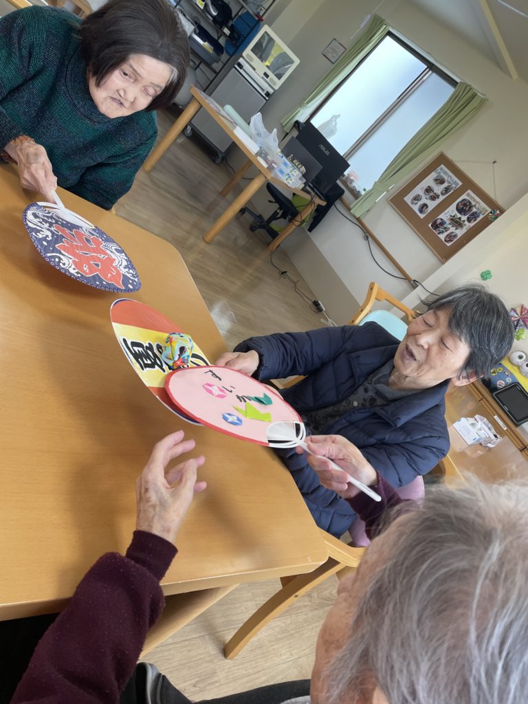 何回落とさずにポンポンとうちわを跳ねさせるかの戦いで