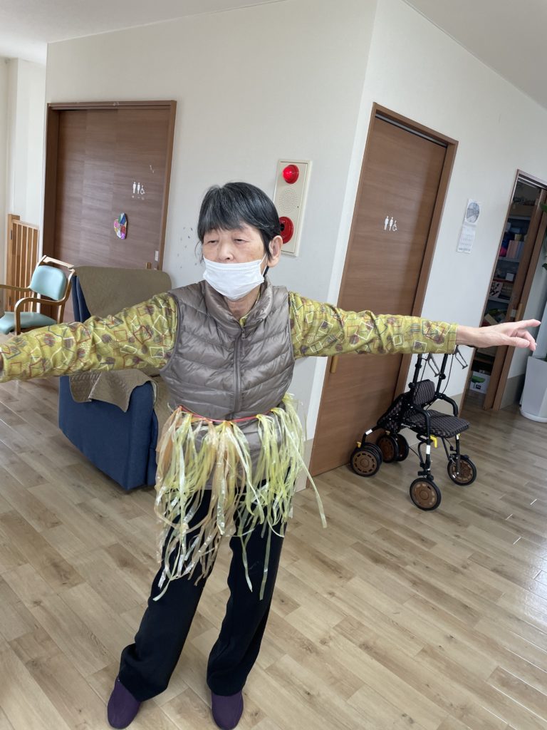 鬼の衣装が・・・ハワイアンに変身した