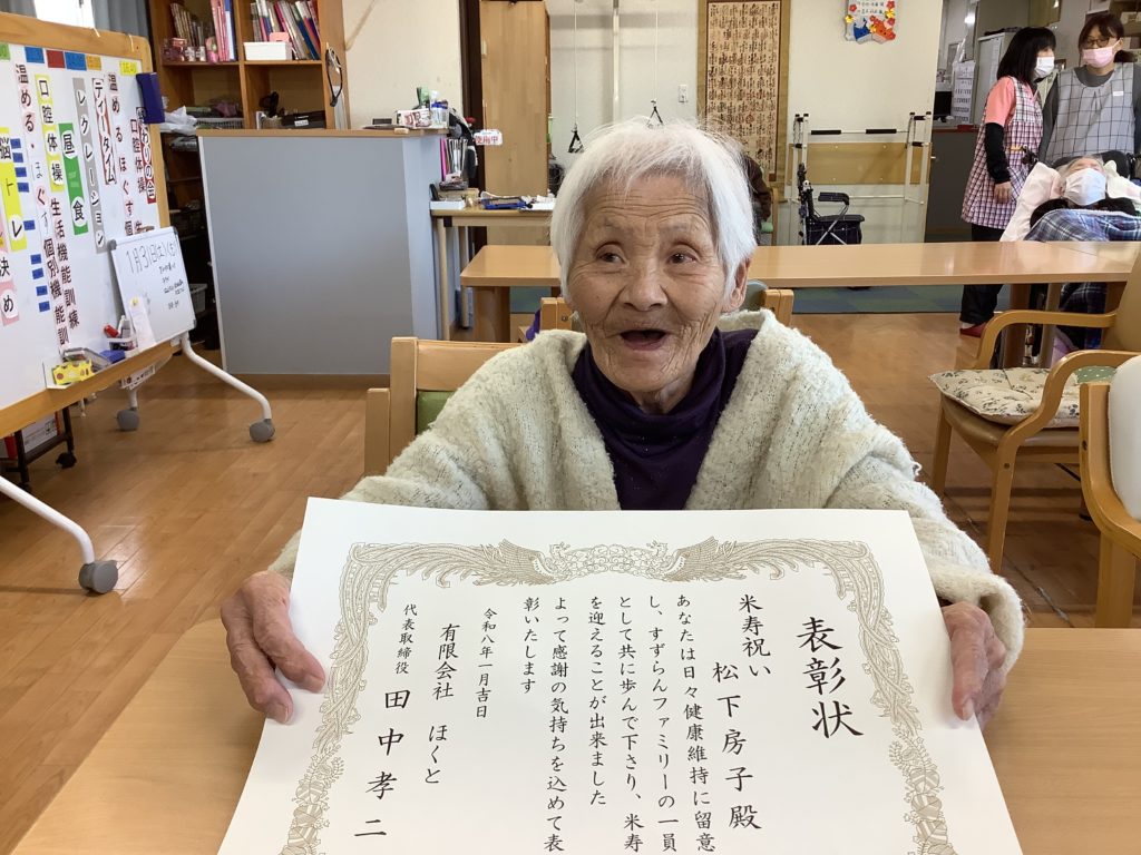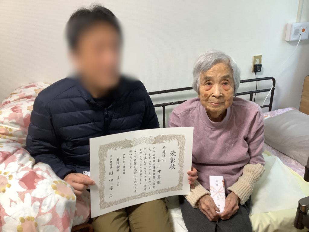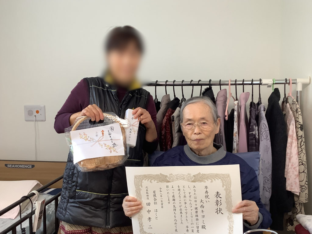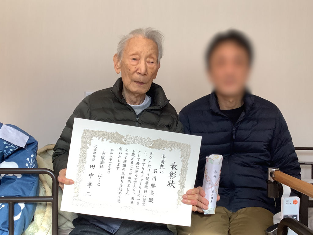 米寿と卒寿のお祝いの品と賞状が届いたので、こちらも記念撮影しました😀