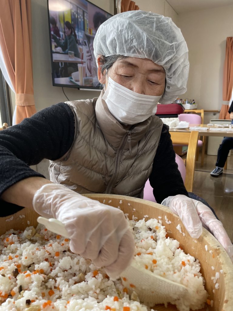 一つずつ 俵のおにぎりに握っていく工程に突入✋