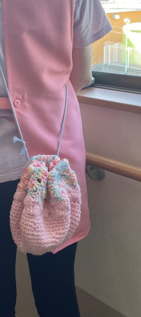 この可愛い毛糸で編んだポーチを