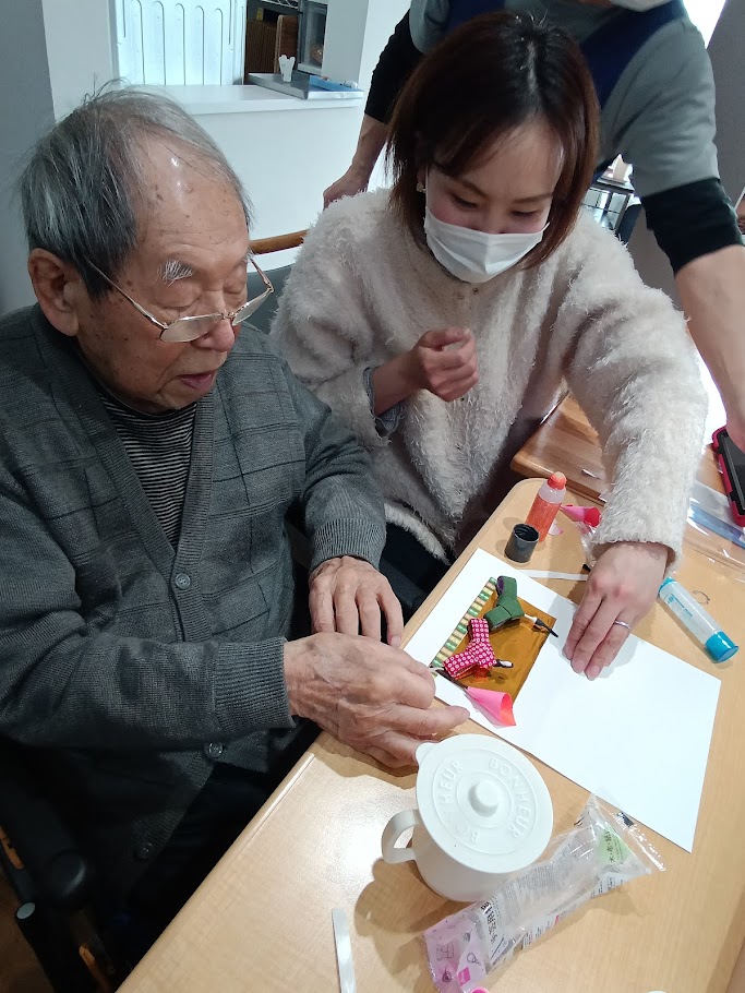 お手本を見ながら、のりやボンドを使って工作しました😌😌
