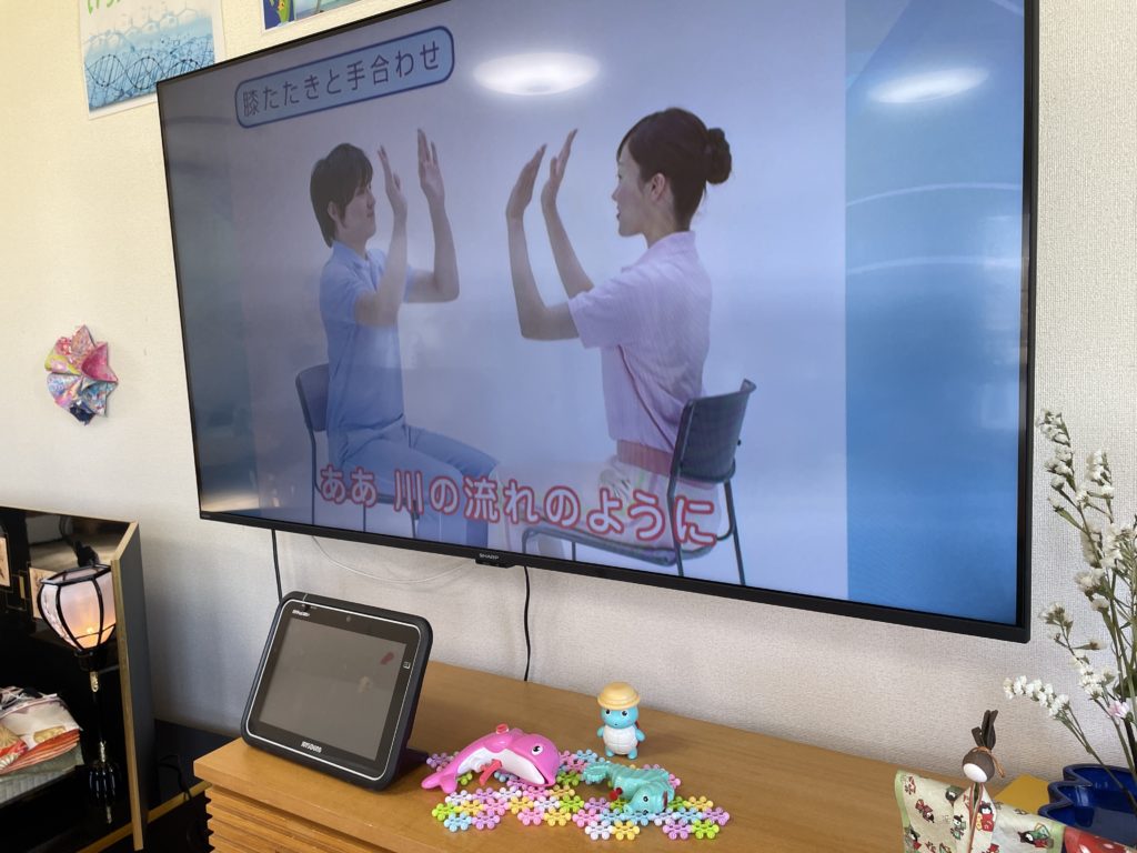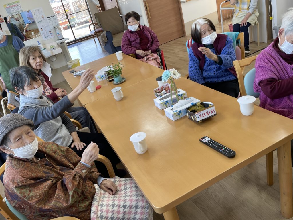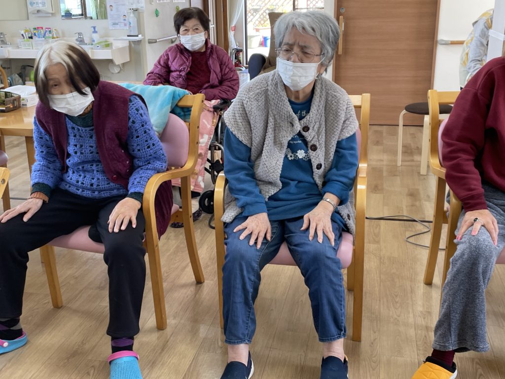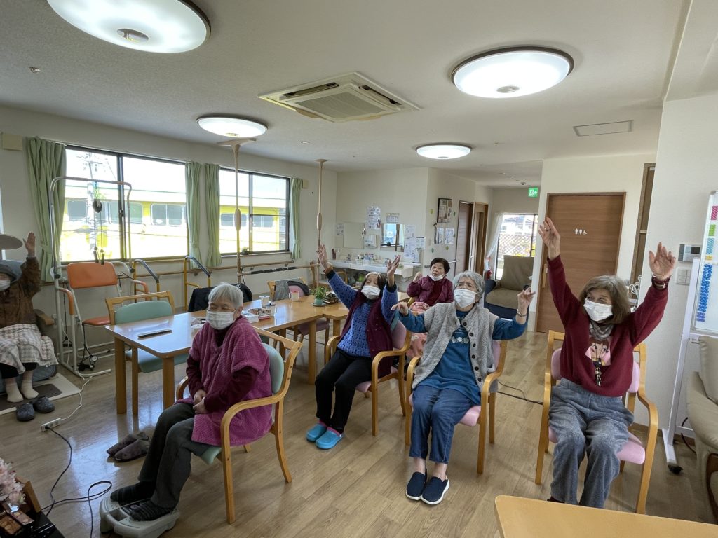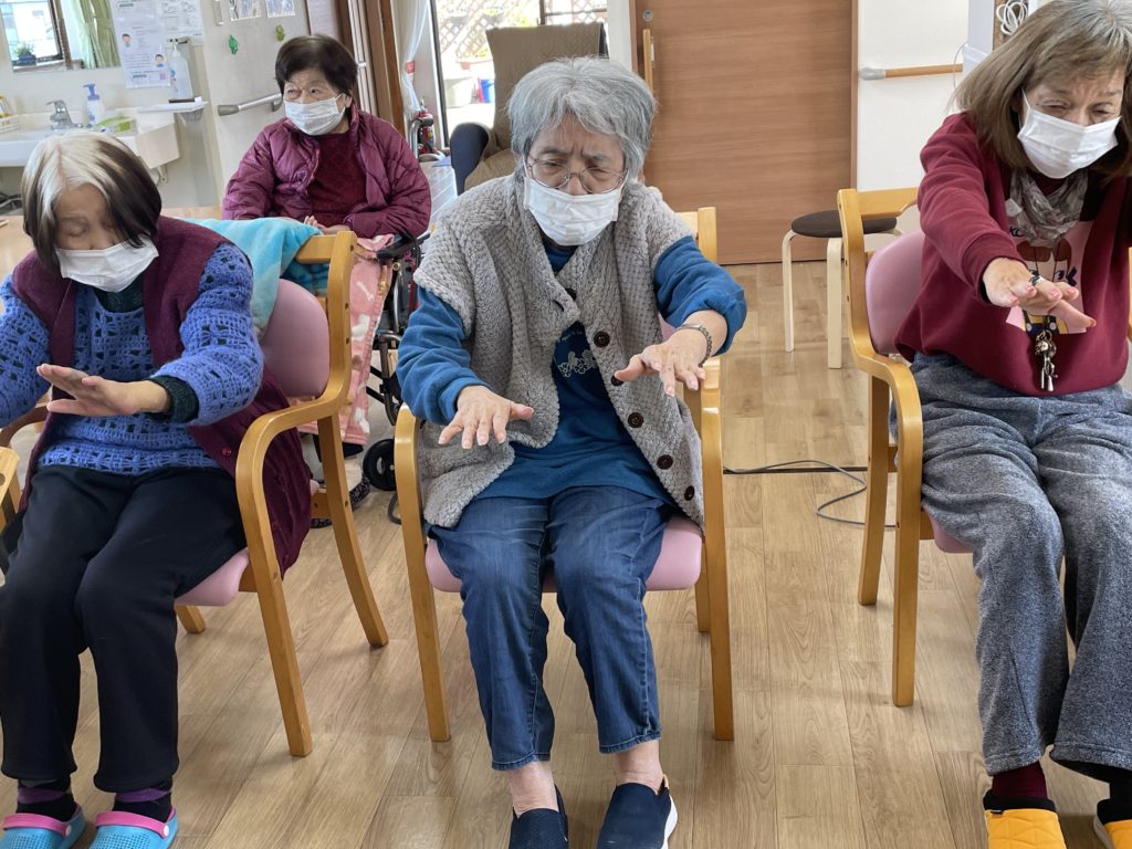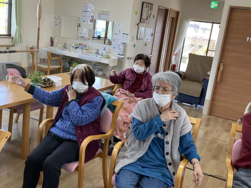④ 上半身の集団機能訓練☜なじみの歌に合わせての訓練