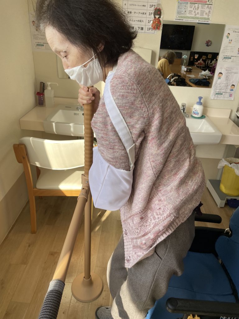 ゆっくり車椅子から立ち上がり