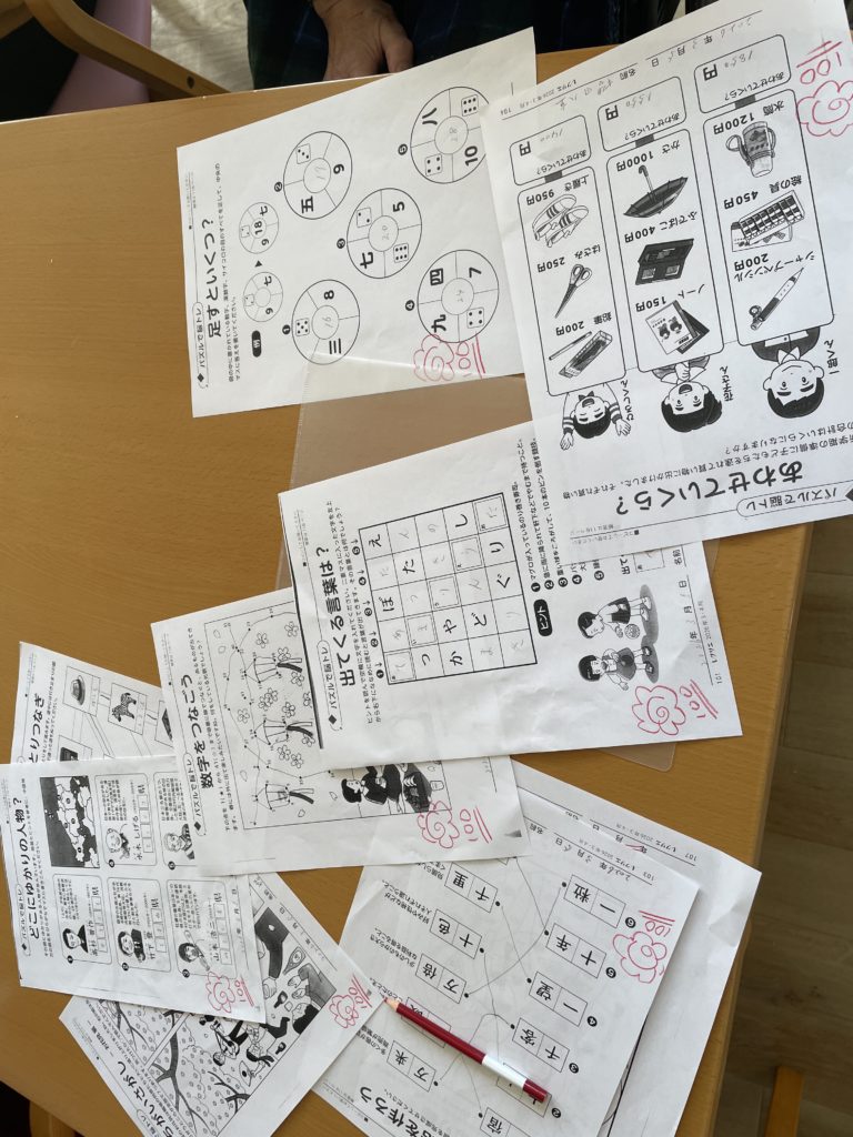 今朝 これだけの枚数の脳トレ問題を持って行ったら