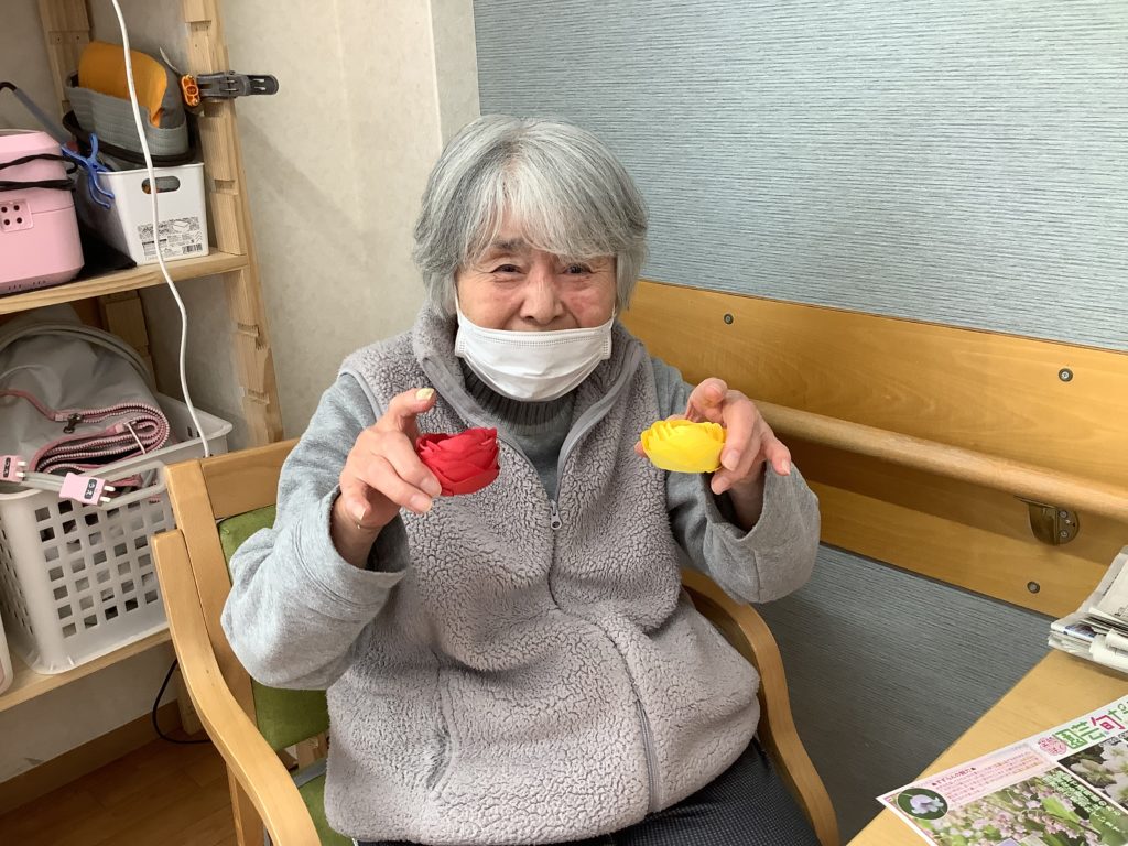 玄関にも飾っていますが、みんな「部屋に持って帰ってもええん?」とお持ち帰りを希望され、お部屋に飾っておられました😆