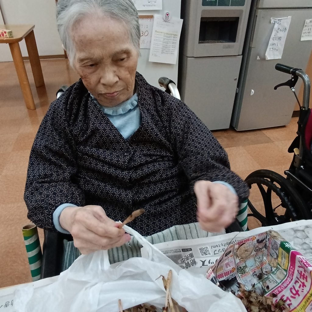 つくしをたくさんいただいたので、皆ではかまを取りました。