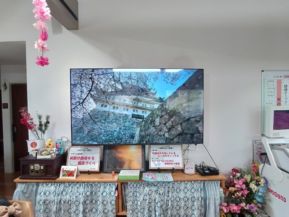 テレビで桜の映像を流してバーチャルお花見をしていただきました👀🌸