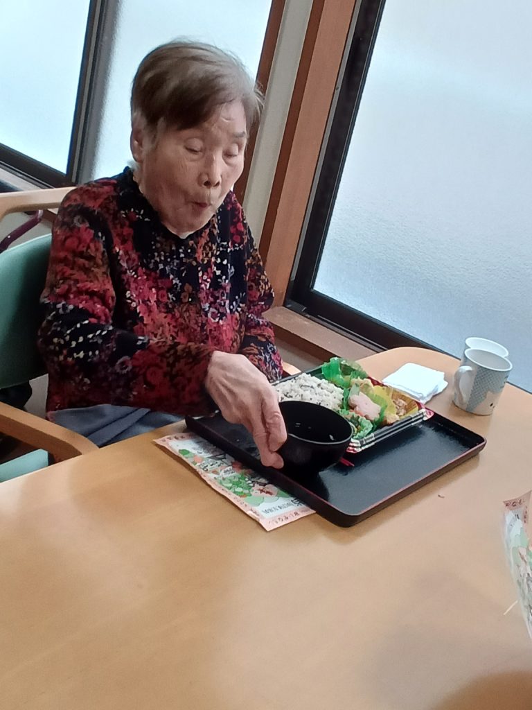 2026.04.02 すずらん通り お花見弁当&体重測定👣&散歩🌸 今日は、昼食にお花見弁当を 美味しく召し上がられました!(^^)!🌸 午後から 月1度の体重測定👣 いくつになったかは、 ヒ・ミ・ツ(⋈◍>◡<◍)。✧♡ 近くの公園に 桜🌸の咲き具合を 見に散歩に行きました☆彡 1株3輪咲き、もう1株1輪咲き あまり咲いていませんでした”(-“”-)” 残念((+_+)) 記事一覧へ戻る 各施設ごとのすずらん便りはこちらから