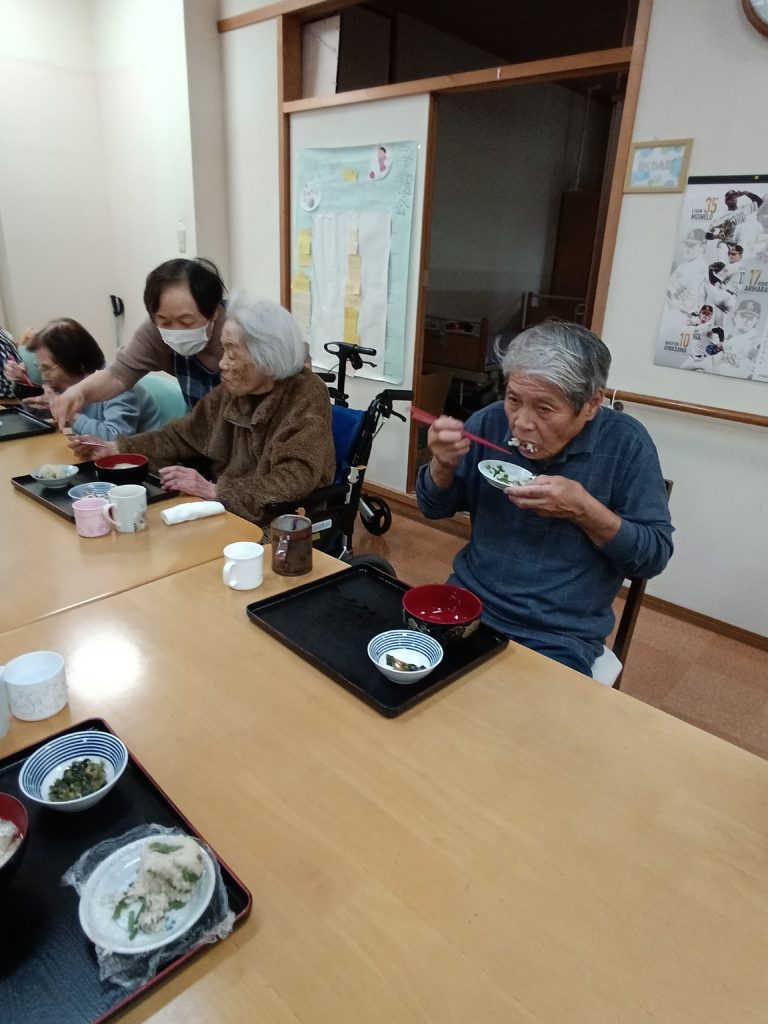 2026.04.06 すずらん通り 山菜ごはんおにぎり~作り&実食~ 5(日)に切りこみした山菜を 鍋で1~2分湯がき 9合洗った米に 酒・だしの素・醤油を入れて 味付けし スイッチオン 炊き上がって 少し冷ましてから ラップでおにぎりを握りました(*’▽’) 昼食にうどんと一緒に 美味しく召し上がられました!(^^)! 記事一覧へ戻る 各施設ごとのすずらん便りはこちらから