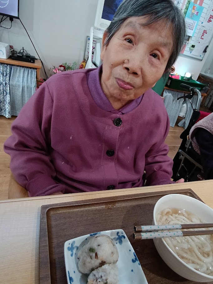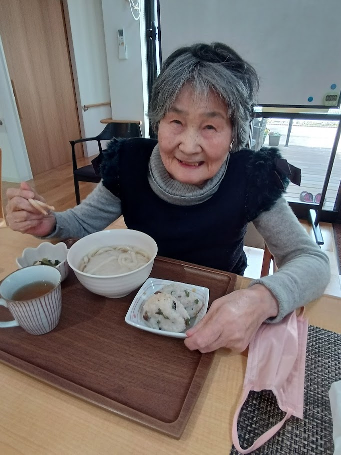 本日のお昼は、うどんと山菜ご飯でした🍚