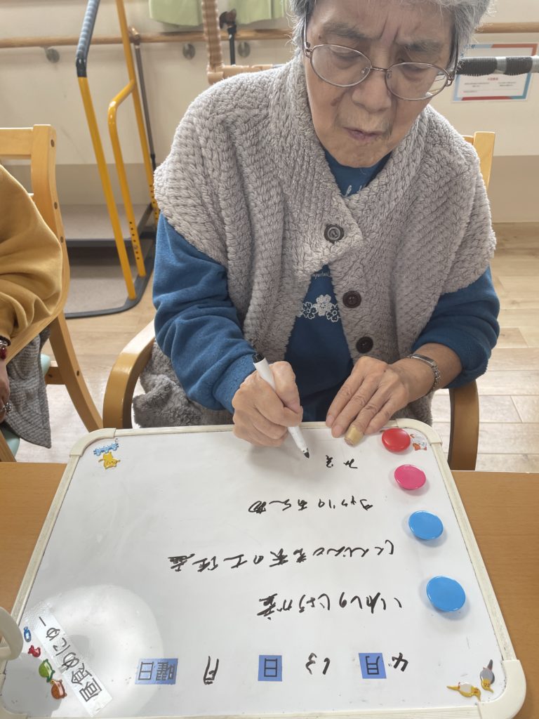 本日のlunchのメニュー表を記入してくださっているF様😊
