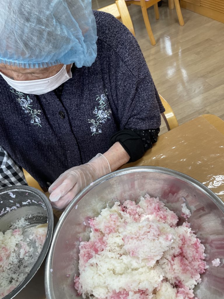 炊き立てのご飯に桜餅パウダーをIN🌸