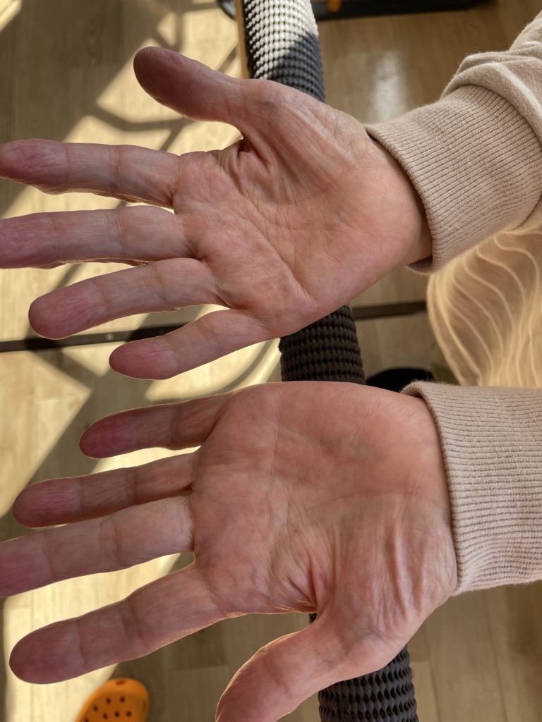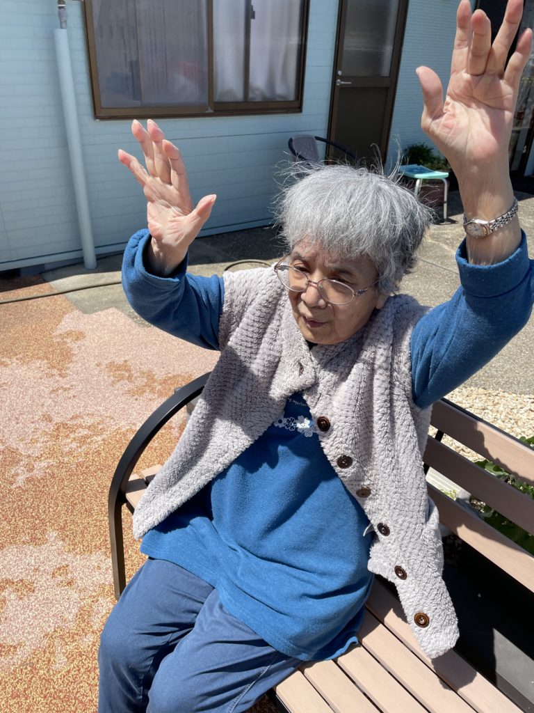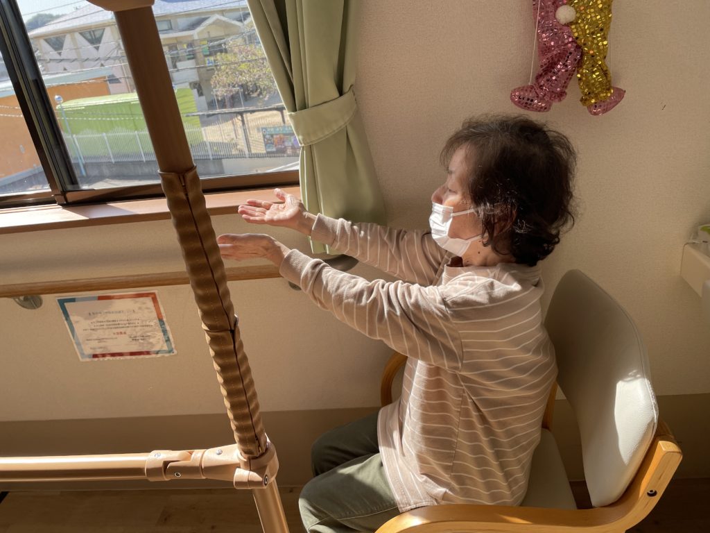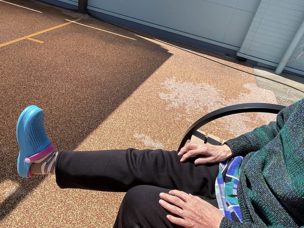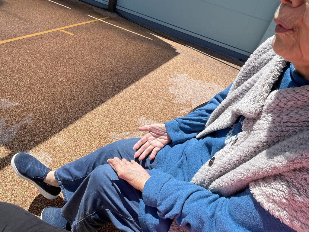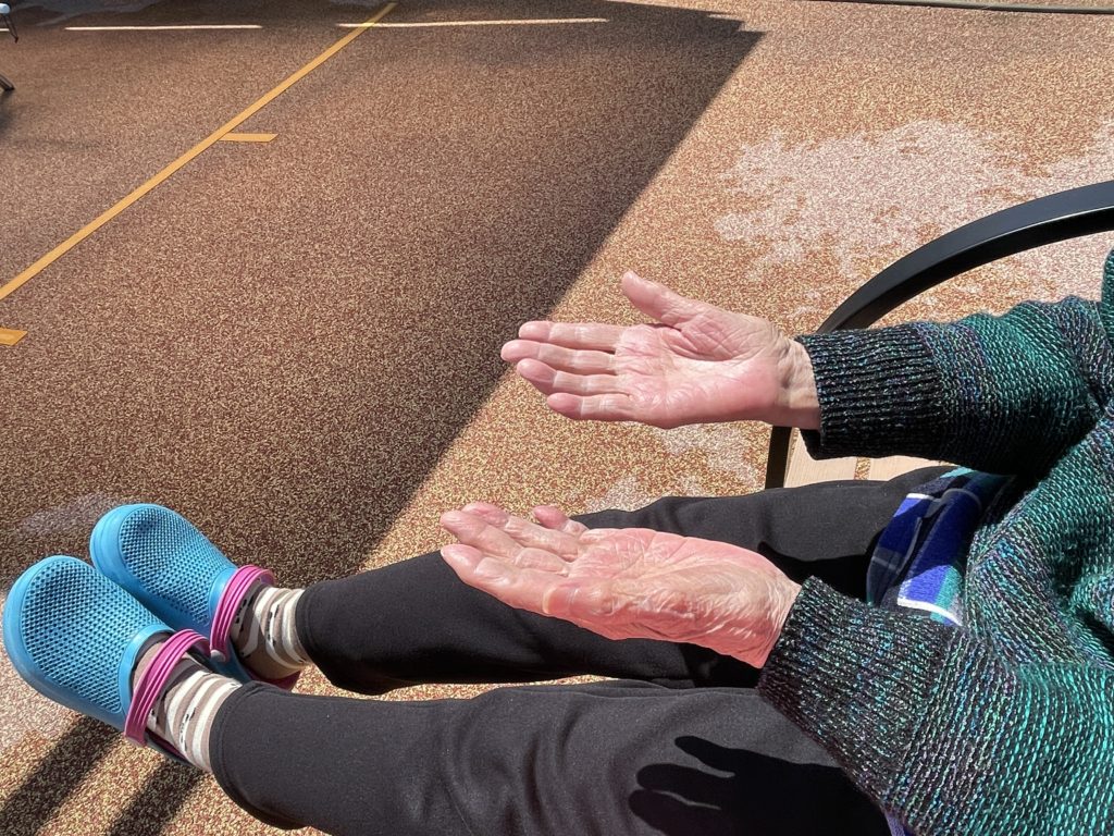 ベンチに座ってからの訓練や手のひら15分日光浴🌞