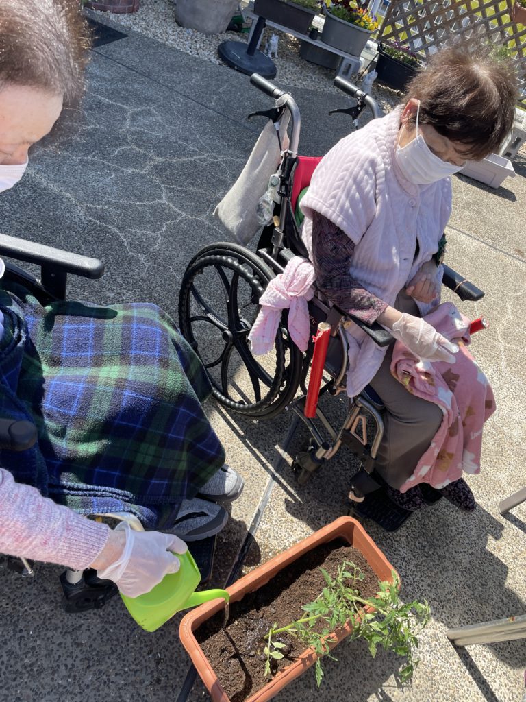 🧑🦯➡️👩🦯➡️風にも負けず屋外リハビリ👩🦯🧑🦯&🍅風に負けるなトマトの苗🍅